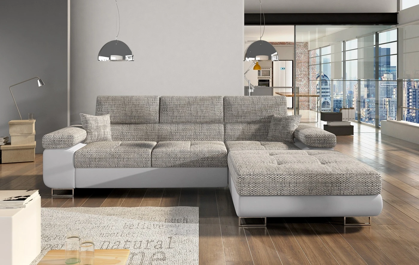 Modernus originalaus dizaino baldas, kurio stilinga išvaizda puikiai užpildys bet kurios svetainės interjerą. Modelis taip pat turi patalynės dėžę bei miegojimo funkciją, kuri neabejotinai padidina baldo funkcionalumą.