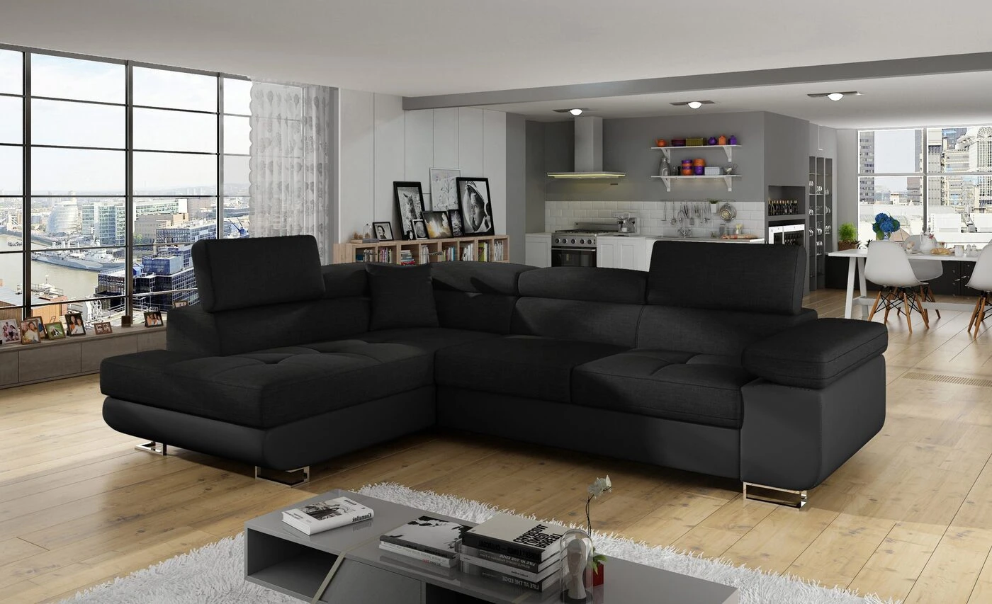 Erdvus minkštas kampas, įdomaus dizaino funkcionalus baldas šiuolaikiškiems namams. Kampas pasižymi patvaria konstrukcija – šiek tiek užapvalintais šonais, plačiu porankiu, aukštomis, blizgiomis chromuotomis metalinėmis kojelėmis, subtiliu dygsniuotu dizainu ir siūlėmis ant sėdynių bei patogiomis galvos atramomis. Papildomas privalumas tai trijų galvos atramų reguliavimo galimybė - skirtingiems poreikiams. Patvari, stabili baldo konstrukcija derinama su patogiu sėdynės užpildu iš dilimui atsparių gofruotų spyruoklių ir išskirtinai lankstaus bei patogaus naudoti T30 porolono. Minimalistinio stiliaus kampo veliūriniai apmušalai atsparūs trinčiai ir blukimui. Baldas turi pritaikytą miegojimo funkciją ir erdvę patalynės dėžę.