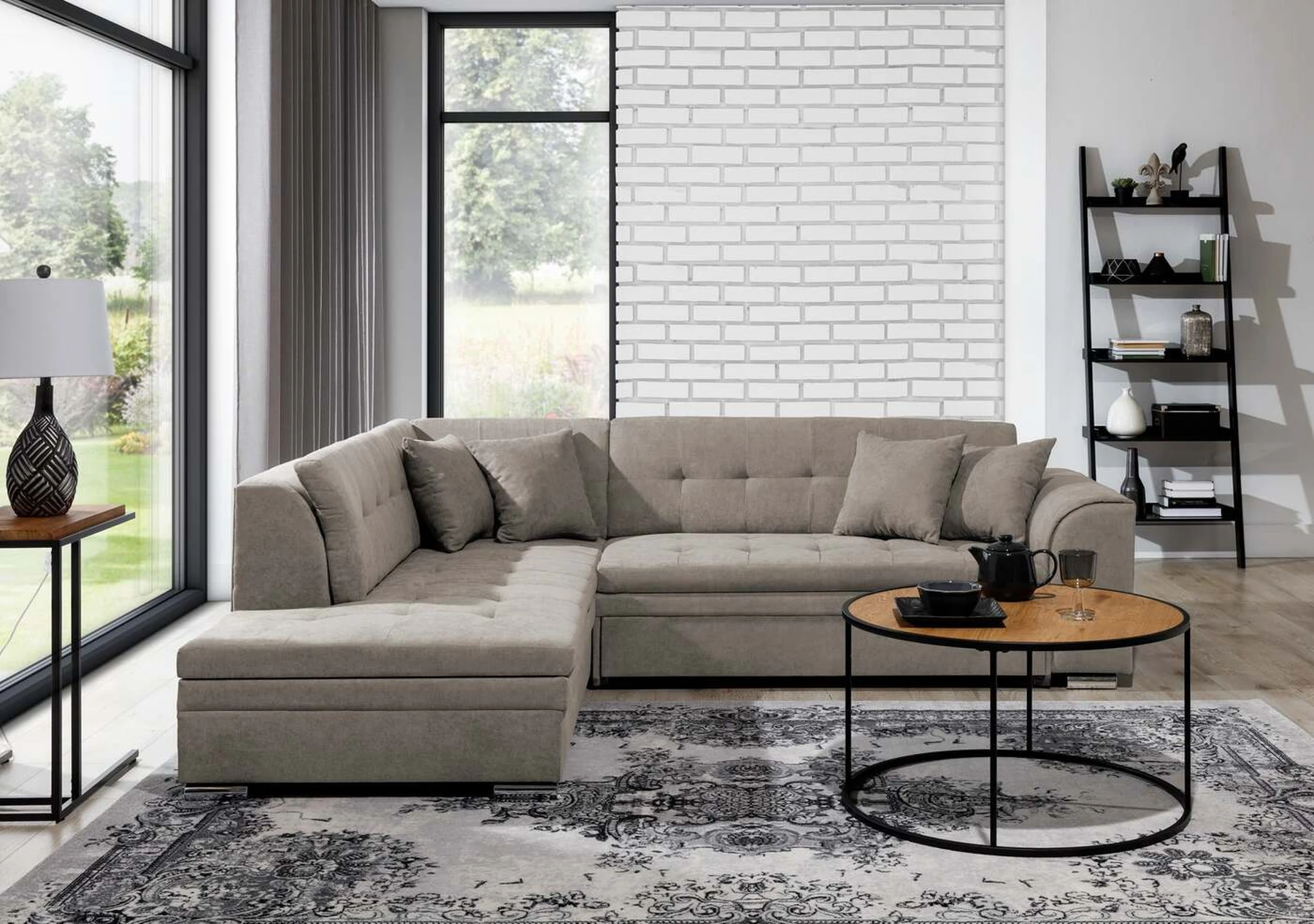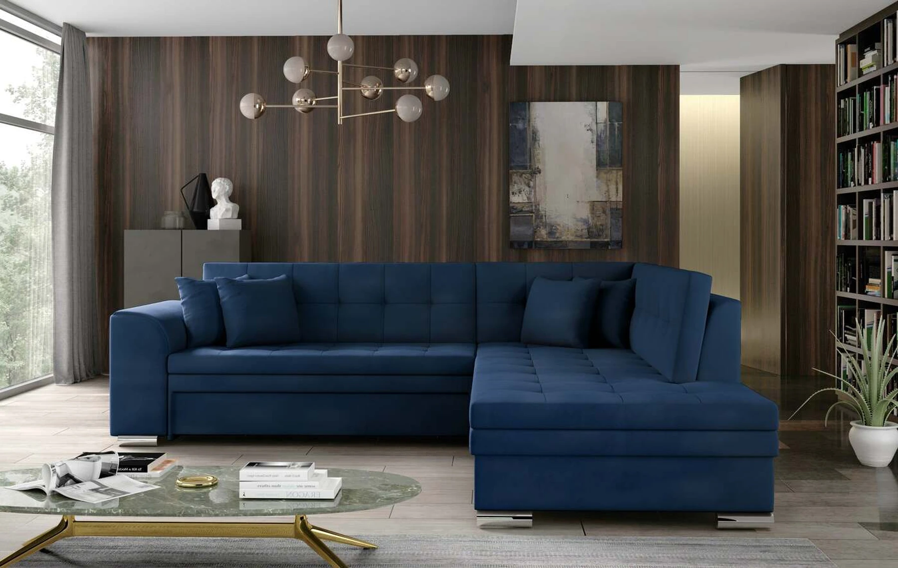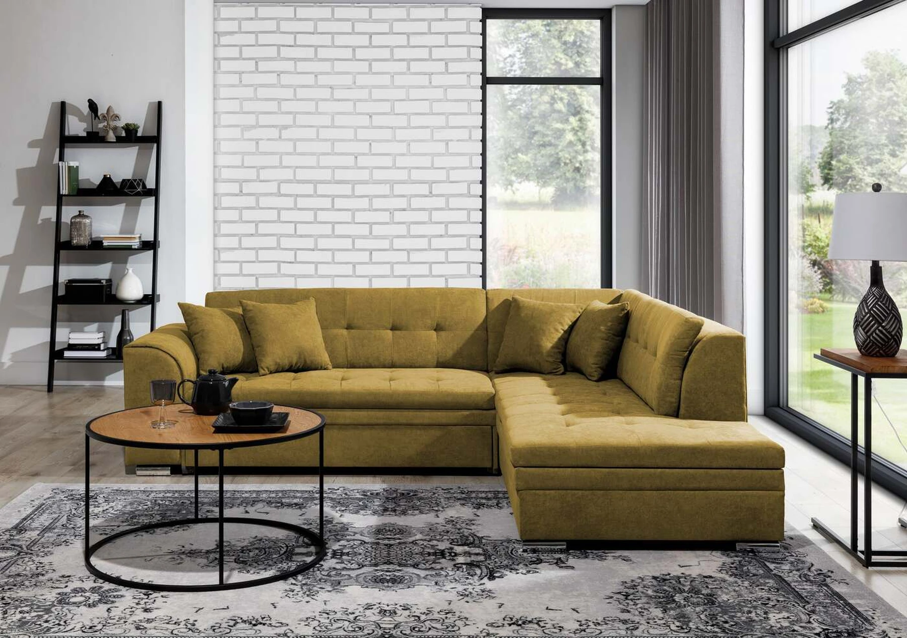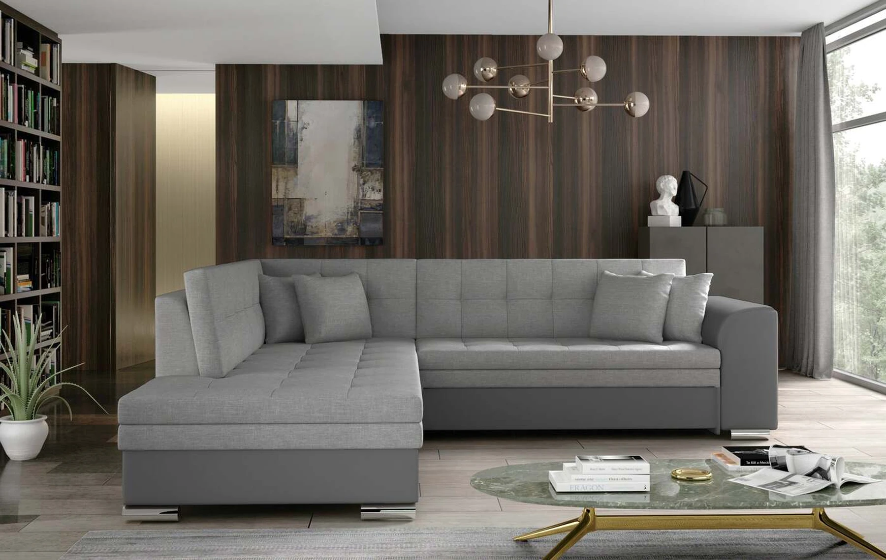 EL4521 yra daugiafunkcinė, tačiau elegantiška ir erdvi klasikinio stiliaus kampinė sofa. Tai aukštos kokybės baldas su plačia sėdyne su užpildu, sukurtu iš gofruotos spyruoklės ir T30 putplasčio derinio. Už EL4521, kurio matmenys 260 x 205 x 80 cm, yra ne tik komfortas, bet ir gerai išmiegotos naktys. per išskirtinai didelį miegamąjį paviršių. Sulankstomas delfinų tipas leidžia lengvai ir be vargo išskleisti sofą, praturtindama ją erdvios lovos, kurios matmenys 200 x 126 cm, funkcija. Didžiausią jaučiamo komforto efektą, be kita ko, įtakoja minkšta, pasvirusi sėdynė. kontūruotas porankis, didelės pagalvėlės įtrauktos į komplektą, taip pat chromuotos ovalios kojos ir kontūrinis atlošas su elegantiška skiautine. Jei smalsu, ką dar gali pasiūlyti kampinė sofa EL4521 – drąsiai rinkitės baldą.