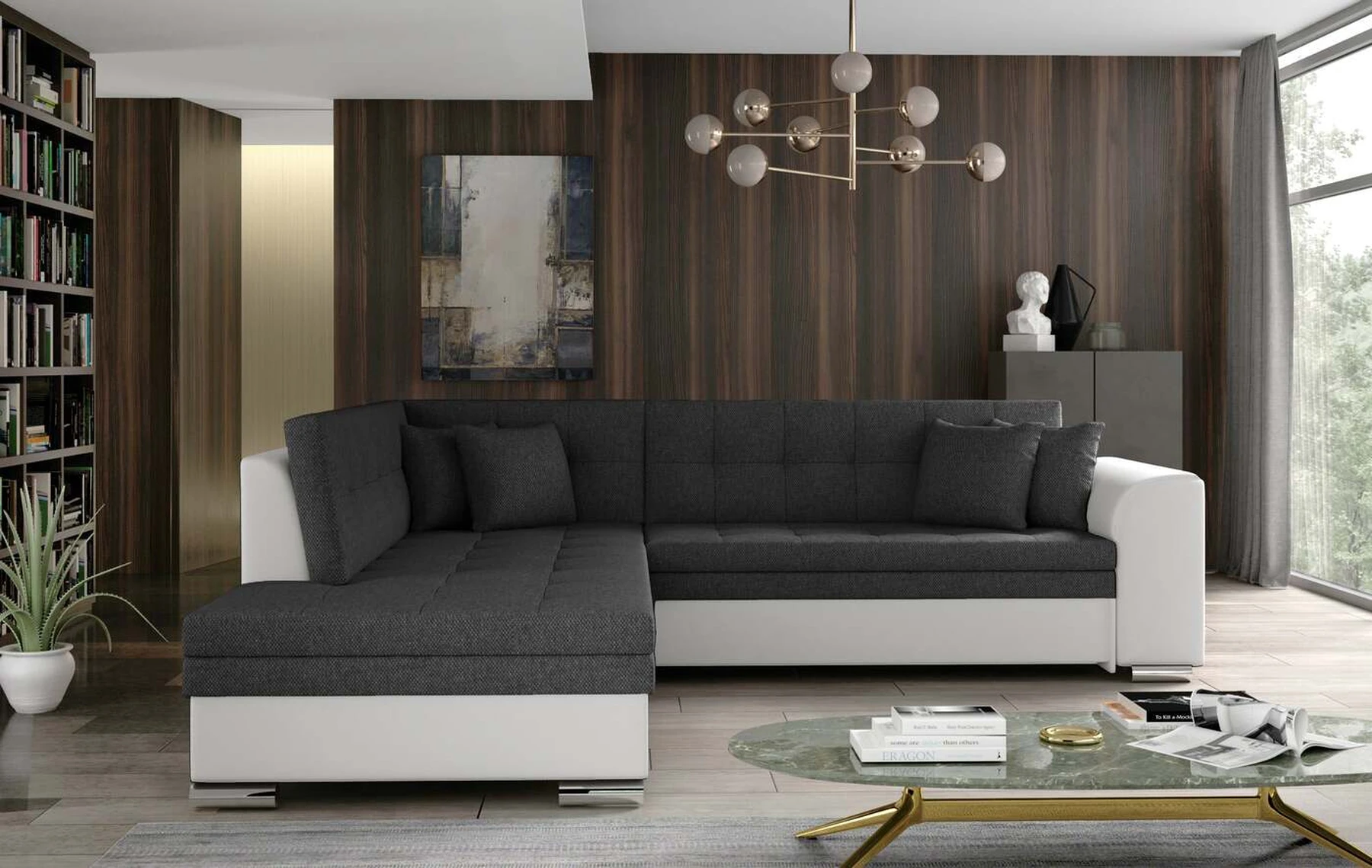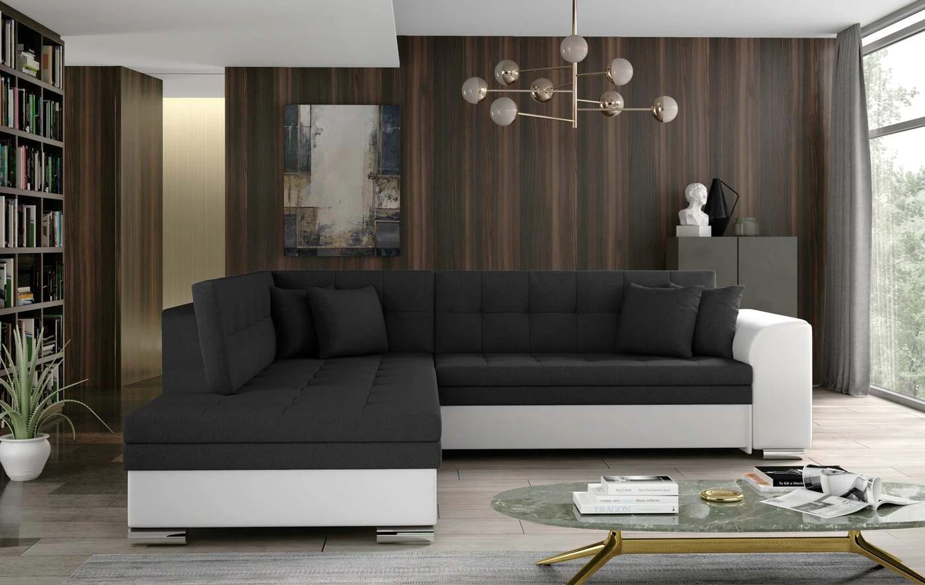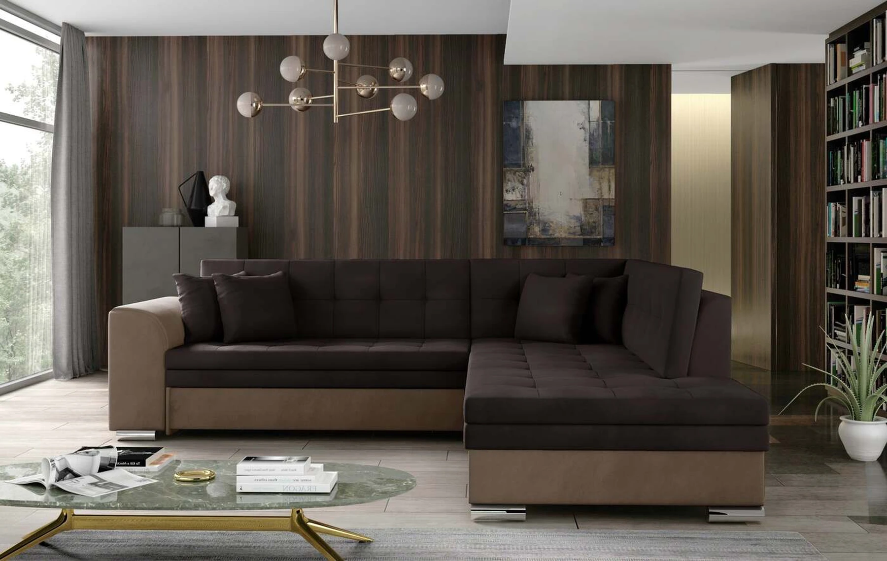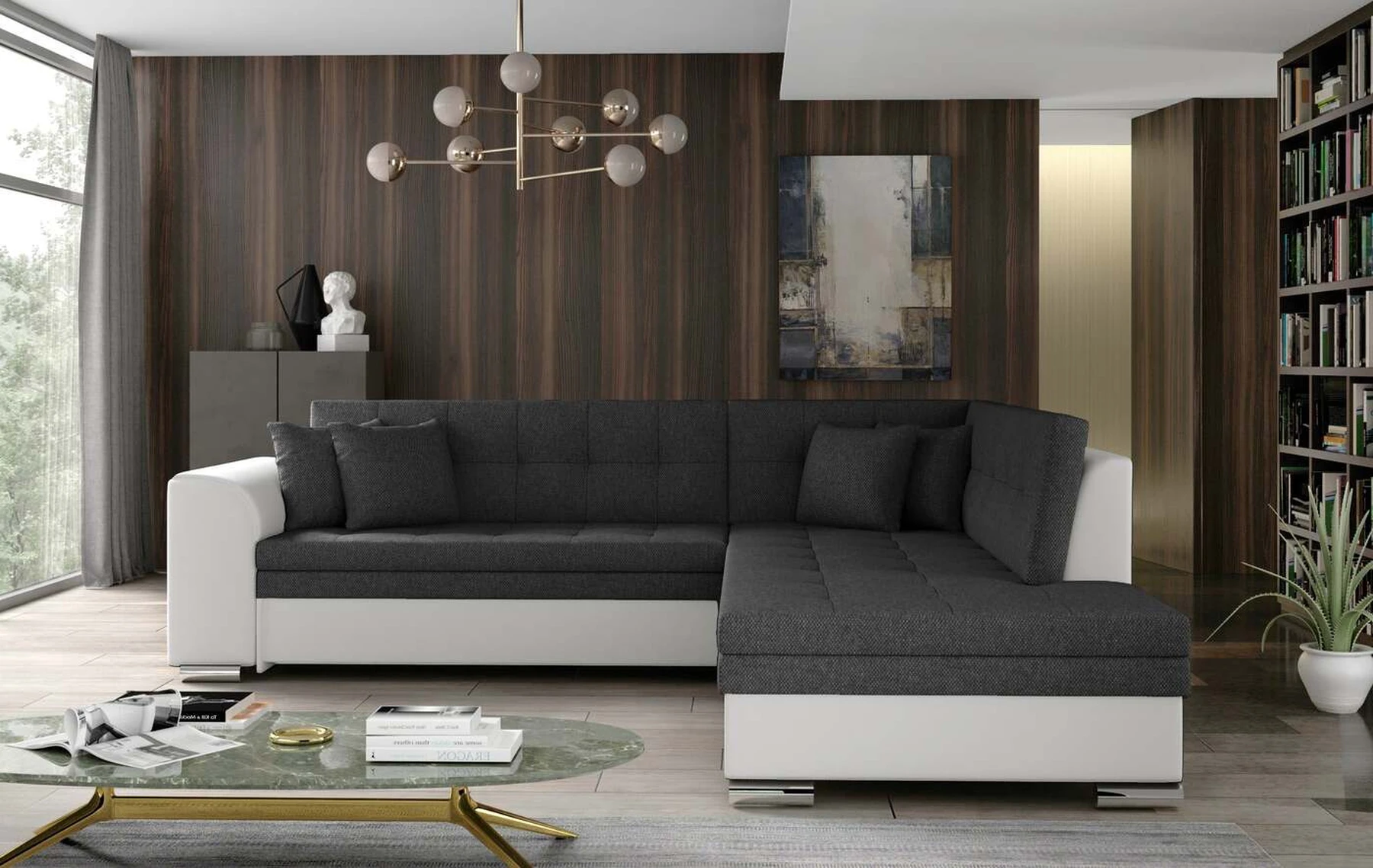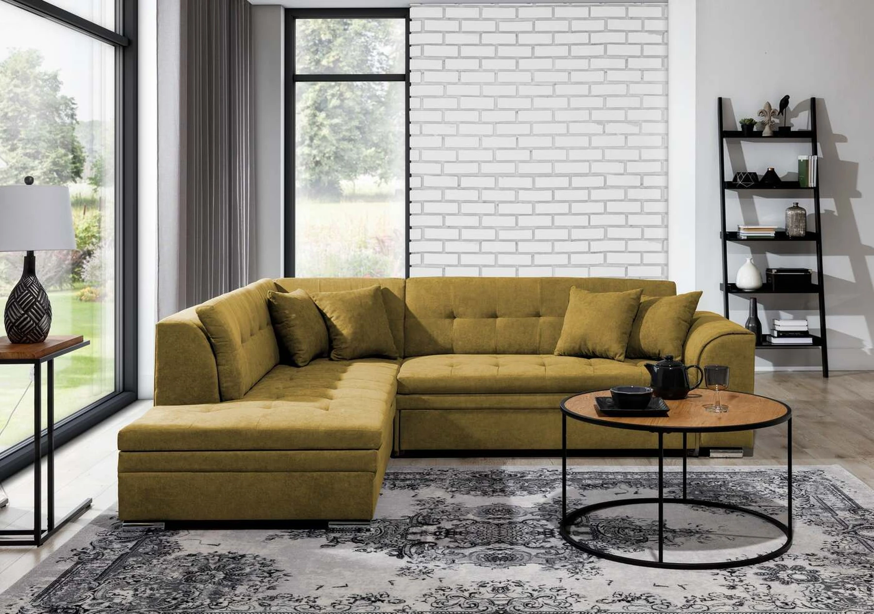 EL4521 yra daugiafunkcinė, tačiau elegantiška ir erdvi klasikinio stiliaus kampinė sofa. Tai aukštos kokybės baldas su plačia sėdyne su užpildu, sukurtu iš gofruotos spyruoklės ir T30 putplasčio derinio. Už EL4521, kurio matmenys 260 x 205 x 80 cm, yra ne tik komfortas, bet ir gerai išmiegotos naktys. per išskirtinai didelį miegamąjį paviršių. Sulankstomas delfinų tipas leidžia lengvai ir be vargo išskleisti sofą, praturtindama ją erdvios lovos, kurios matmenys 200 x 126 cm, funkcija. Didžiausią jaučiamo komforto efektą, be kita ko, įtakoja minkšta, pasvirusi sėdynė. kontūruotas porankis, didelės pagalvėlės įtrauktos į komplektą, taip pat chromuotos ovalios kojos ir kontūrinis atlošas su elegantiška skiautine. Jei smalsu, ką dar gali pasiūlyti kampinė sofa EL4521 – drąsiai rinkitės baldą.