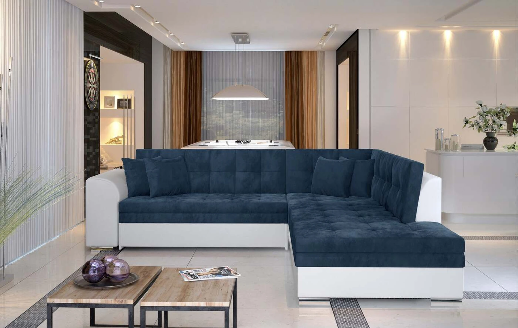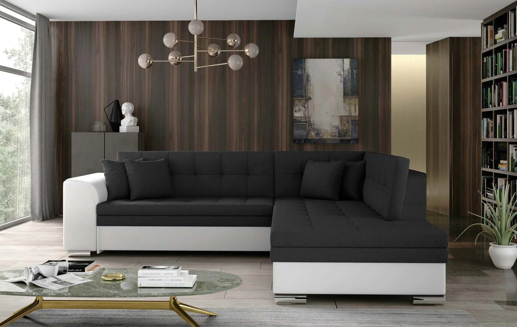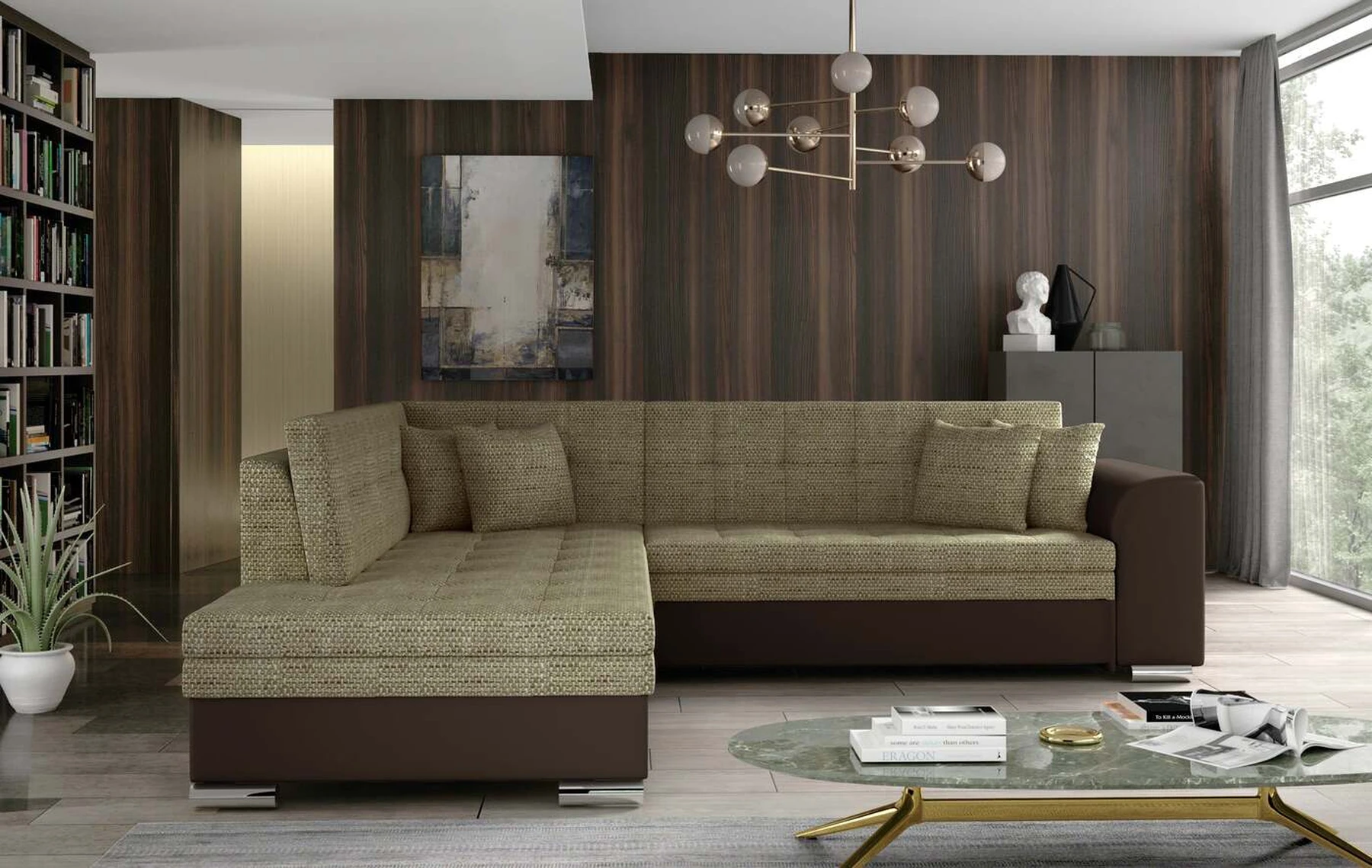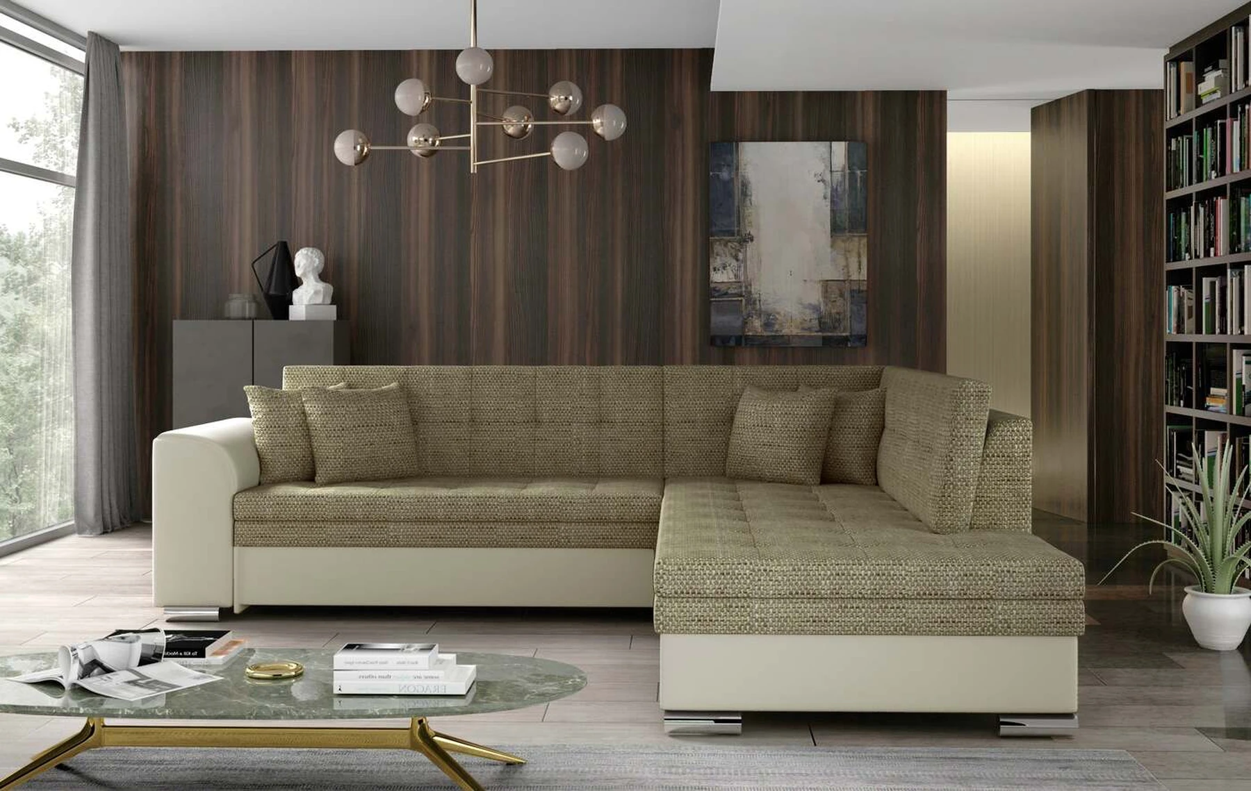 EL4521 yra daugiafunkcinė, tačiau elegantiška ir erdvi klasikinio stiliaus kampinė sofa. Tai aukštos kokybės baldas su plačia sėdyne su užpildu, sukurtu iš gofruotos spyruoklės ir T30 putplasčio derinio. Už EL4521, kurio matmenys 260 x 205 x 80 cm, yra ne tik komfortas, bet ir gerai išmiegotos naktys. per išskirtinai didelį miegamąjį paviršių. Sulankstomas delfinų tipas leidžia lengvai ir be vargo išskleisti sofą, praturtindama ją erdvios lovos, kurios matmenys 200 x 126 cm, funkcija. Didžiausią jaučiamo komforto efektą, be kita ko, įtakoja minkšta, pasvirusi sėdynė. kontūruotas porankis, didelės pagalvėlės įtrauktos į komplektą, taip pat chromuotos ovalios kojos ir kontūrinis atlošas su elegantiška skiautine. Jei smalsu, ką dar gali pasiūlyti kampinė sofa EL4521 – drąsiai rinkitės baldą.