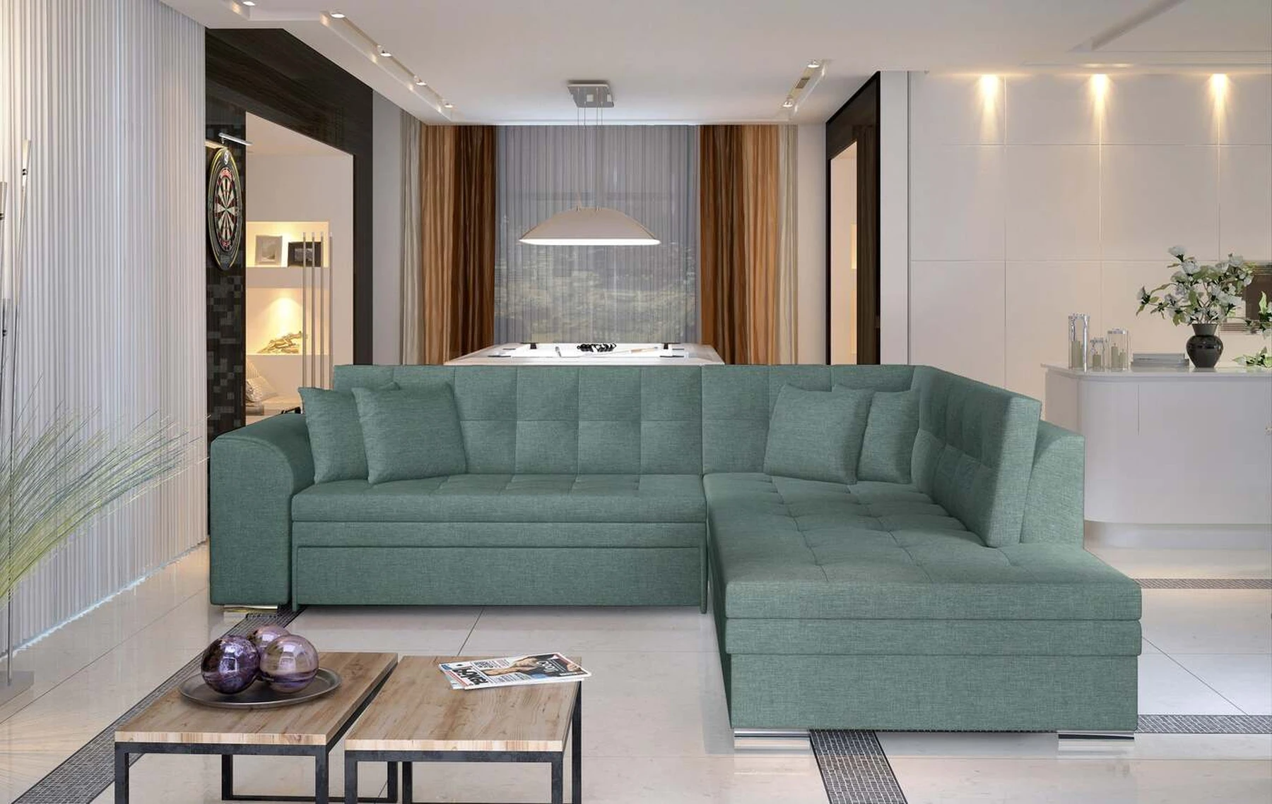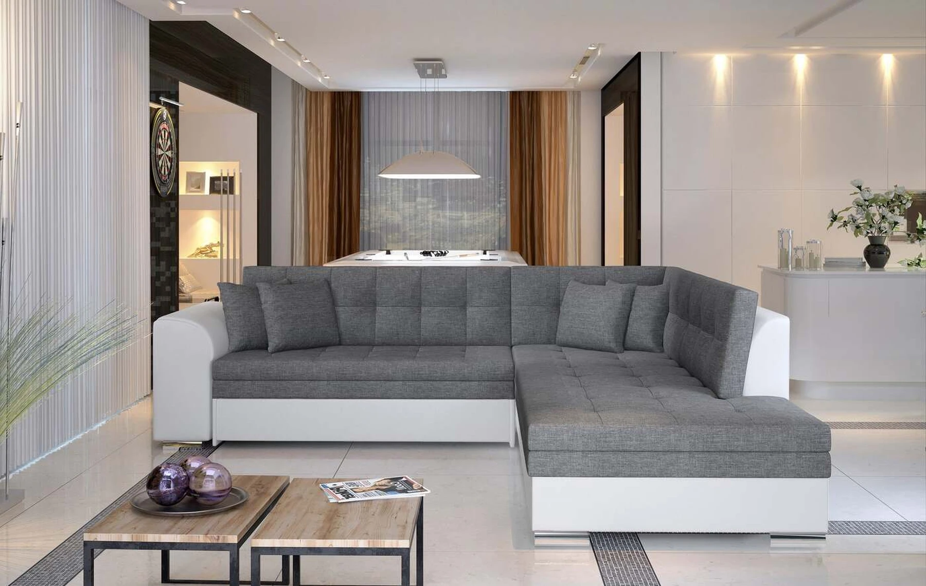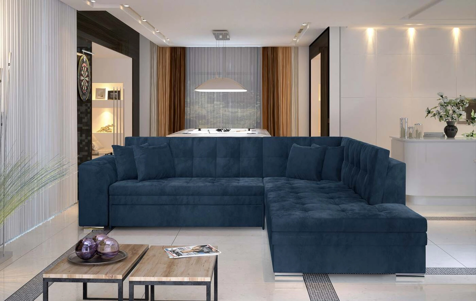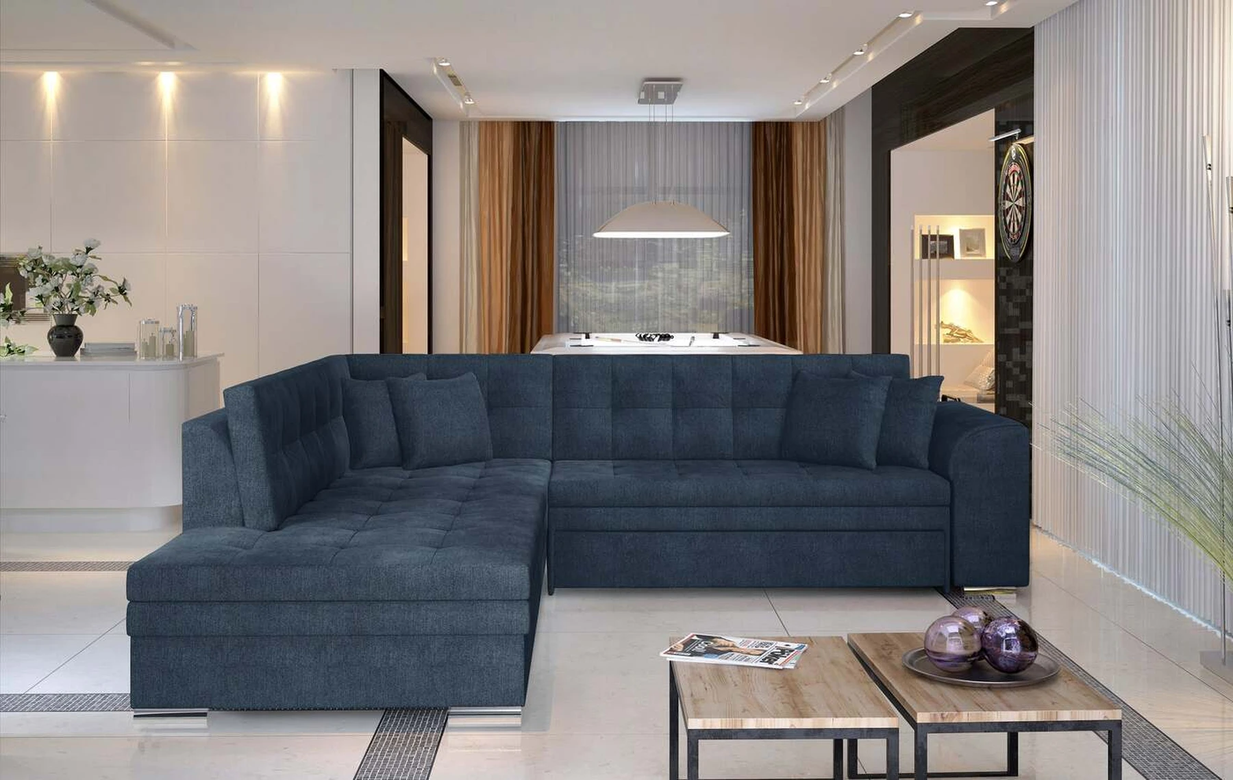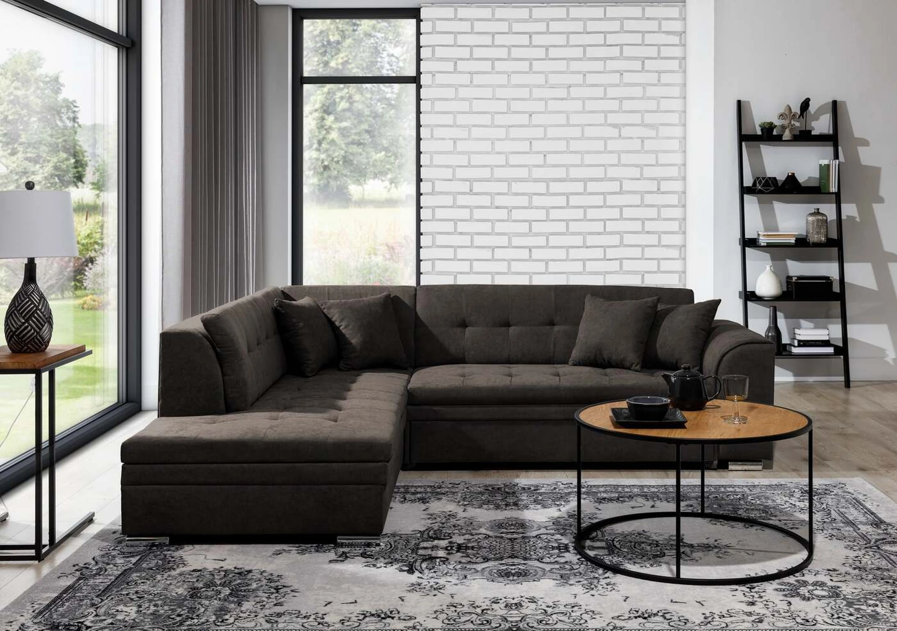 EL4521 yra daugiafunkcinė, tačiau elegantiška ir erdvi klasikinio stiliaus kampinė sofa. Tai aukštos kokybės baldas su plačia sėdyne su užpildu, sukurtu iš gofruotos spyruoklės ir T30 putplasčio derinio. Už EL4521, kurio matmenys 260 x 205 x 80 cm, yra ne tik komfortas, bet ir gerai išmiegotos naktys. per išskirtinai didelį miegamąjį paviršių. Sulankstomas delfinų tipas leidžia lengvai ir be vargo išskleisti sofą, praturtindama ją erdvios lovos, kurios matmenys 200 x 126 cm, funkcija. Didžiausią jaučiamo komforto efektą, be kita ko, įtakoja minkšta, pasvirusi sėdynė. kontūruotas porankis, didelės pagalvėlės įtrauktos į komplektą, taip pat chromuotos ovalios kojos ir kontūrinis atlošas su elegantiška skiautine. Jei smalsu, ką dar gali pasiūlyti kampinė sofa EL4521 – drąsiai rinkitės baldą.