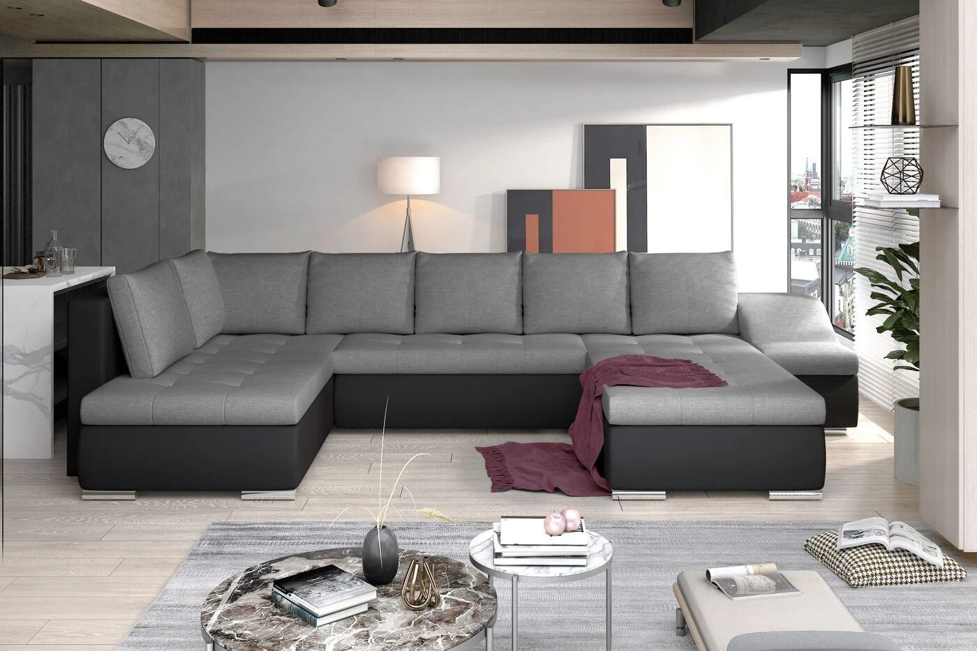 Minkštas kampas - GIOVANNI, pilka/juoda