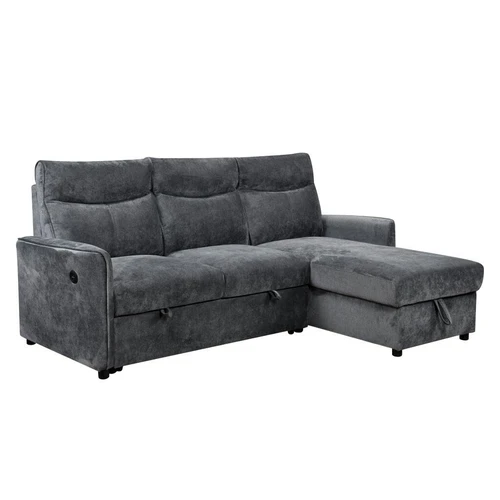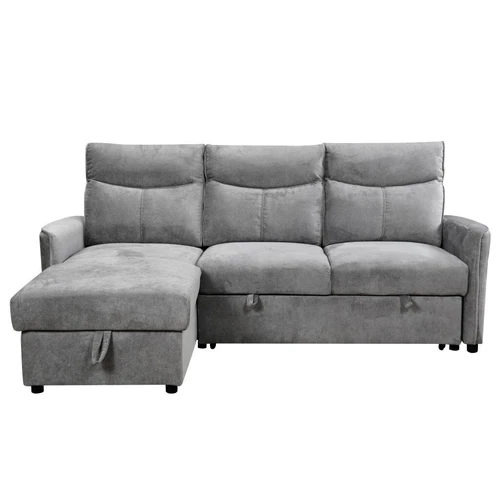 Minkštas kampas LUMEN leis stilingai mėgautis poilsiu su šeima ar priimti draugus į svečius. Kampinę sofą galima lengvai ištiesti patogaus transformavimo mechanizmo pagalba į plačią bei patogią miegamąją lovą. Po kampine dalimi yra patalynės dėžė.