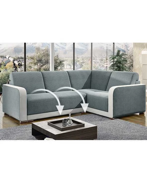 *Nuotraukoje minkštas kampas pagamintas iš audinio SOFIA 13 ir eko odos MADRYT 120.