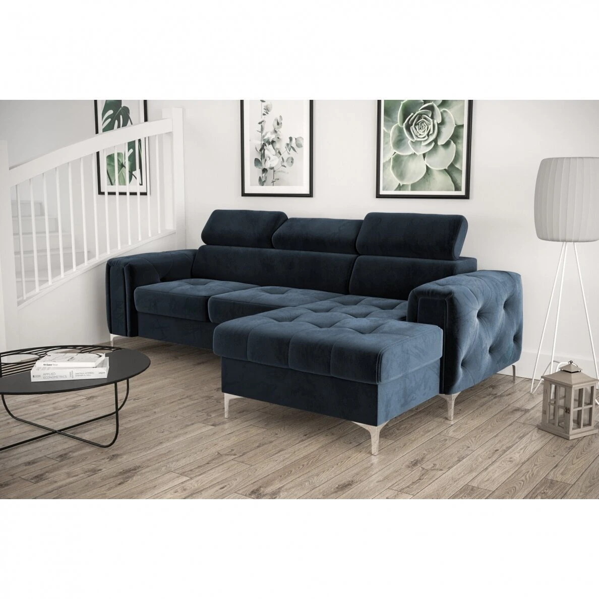 Kampinė sofa „Orion Mini“ su miegamąja funkcija išsiskiria gražiai dekoruotu, dygsniuotu šonu, kuris suteikia baldo visumai unikalaus stiliaus.