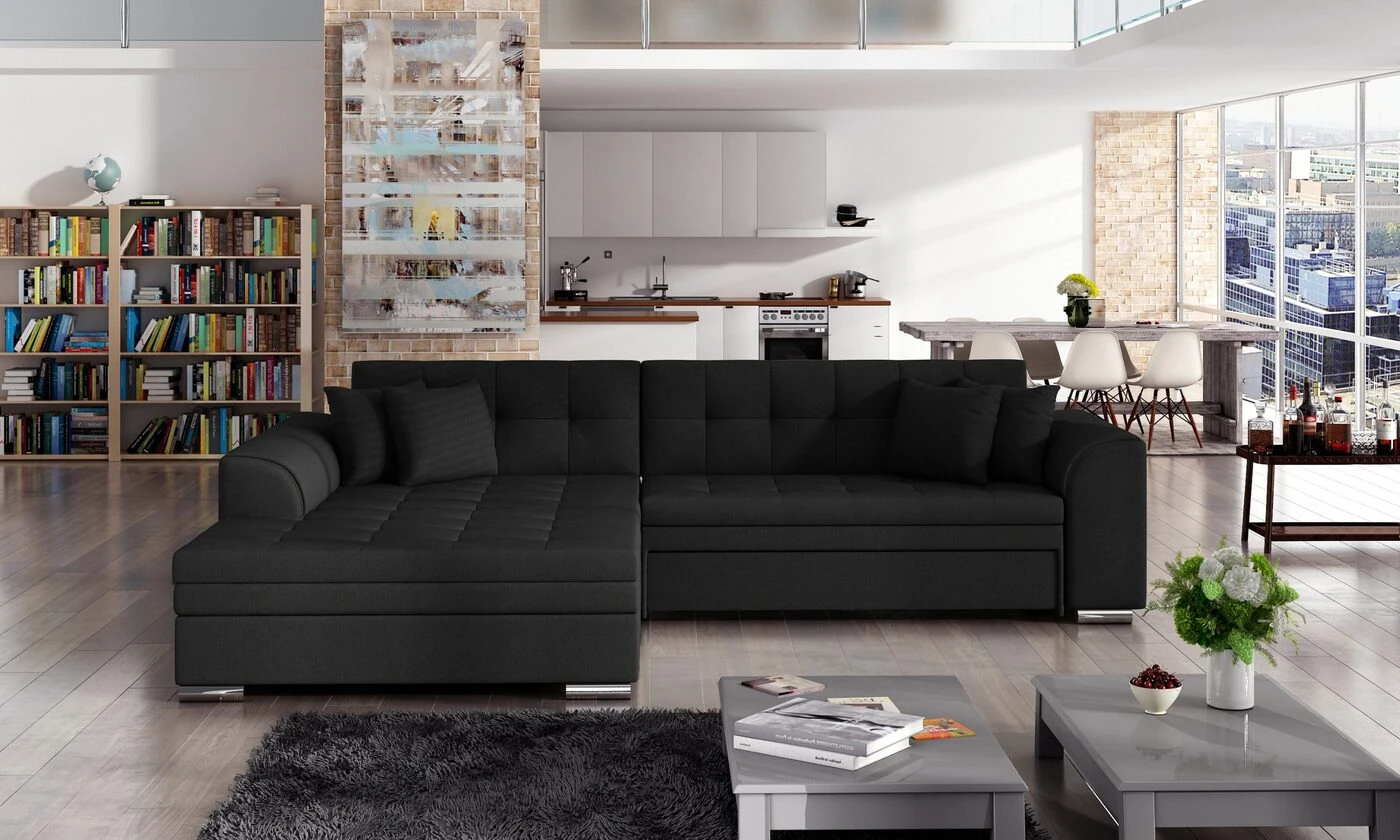 Modernaus dizaino, itin patogus minkštas kampas SORENTO ne tik puikiai atrodo, bet ir yra funkcionalus: turi miegojimo funkciją, bei patalynės dėžę. Kampo pusės pasirinkimas.