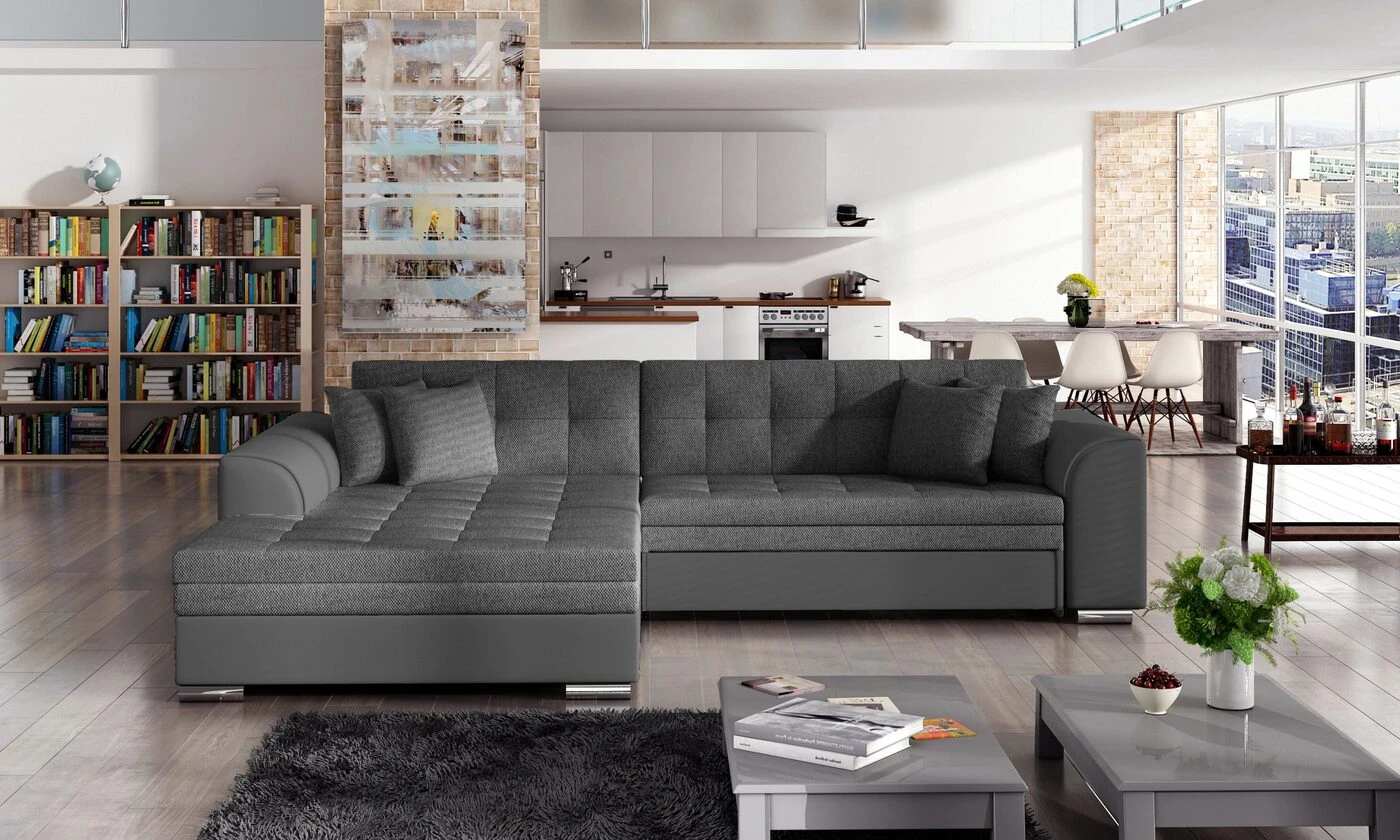 Modernaus dizaino, itin patogus minkštas kampas SORENTO ne tik puikiai atrodo, bet ir yra funkcionalus: turi miegojimo funkciją, bei patalynės dėžę. Kampo pusės pasirinkimas.