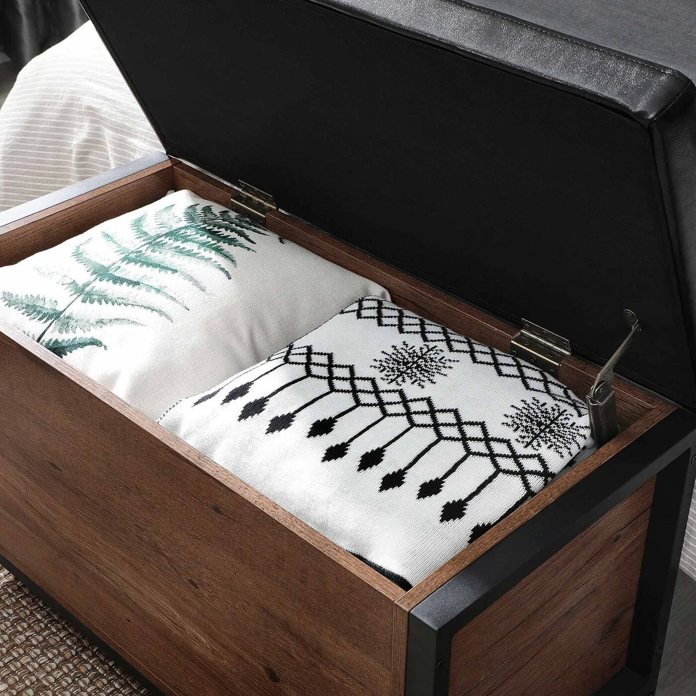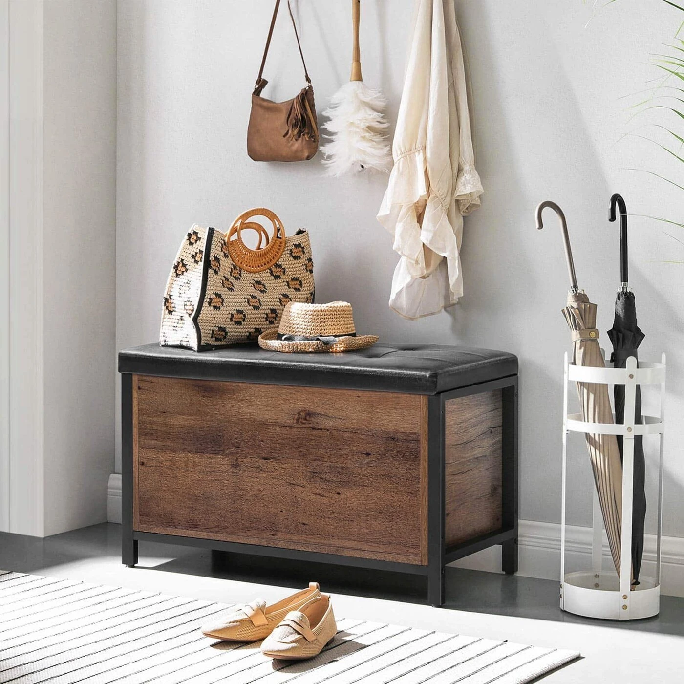 Aprašymas buvo automatiškai išverstas, gali pasitaikyti klaidų.Prekės informacija: - Spalva: lazdyno juoda - Medžiaga: medžio drožlių plokštė, plienas, PU oda, putplastis - Dydis: 80 x 40 x 50 cm (P x P x A) - Svoris: 16,9 kg - Maksimali sėdynės statinė apkrova : 90 kg - Maksimali krūtinės dėžės statinė apkrova: 20 kgPristatymo komplektacija: - 1 x sėdimoji krūtinė su vieta daiktams laikyti - 1 x priedų paketas - 1 x vadovas (DE, EN, ES, FR, IT) VASAGLE Pastabos: - Saugumo sumetimais vaikams draudžiama lipti ant gaminio arba žaisti su juo - Maksimali gaminio statinė apkrova yra 90 kg. Prašome neviršyti šio didžiausio svorio.