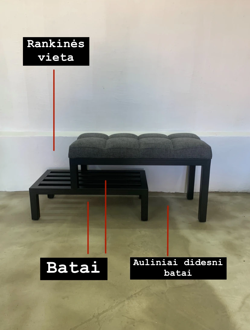 | Medžiagos | Metalo rėmas, viršaus audinys Bergen-16 iš litena.lt |