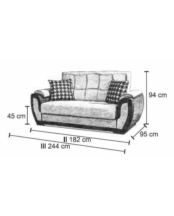 Plotis | Sofa (trivietė) - 244 cm; Sofa (dvivietė) - 182 cm; Fotelis - 105 cm; |
