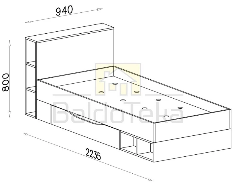 Lovos rėmo Ilgis/Plotis/Aukštis: 223,5/94/80 cm.