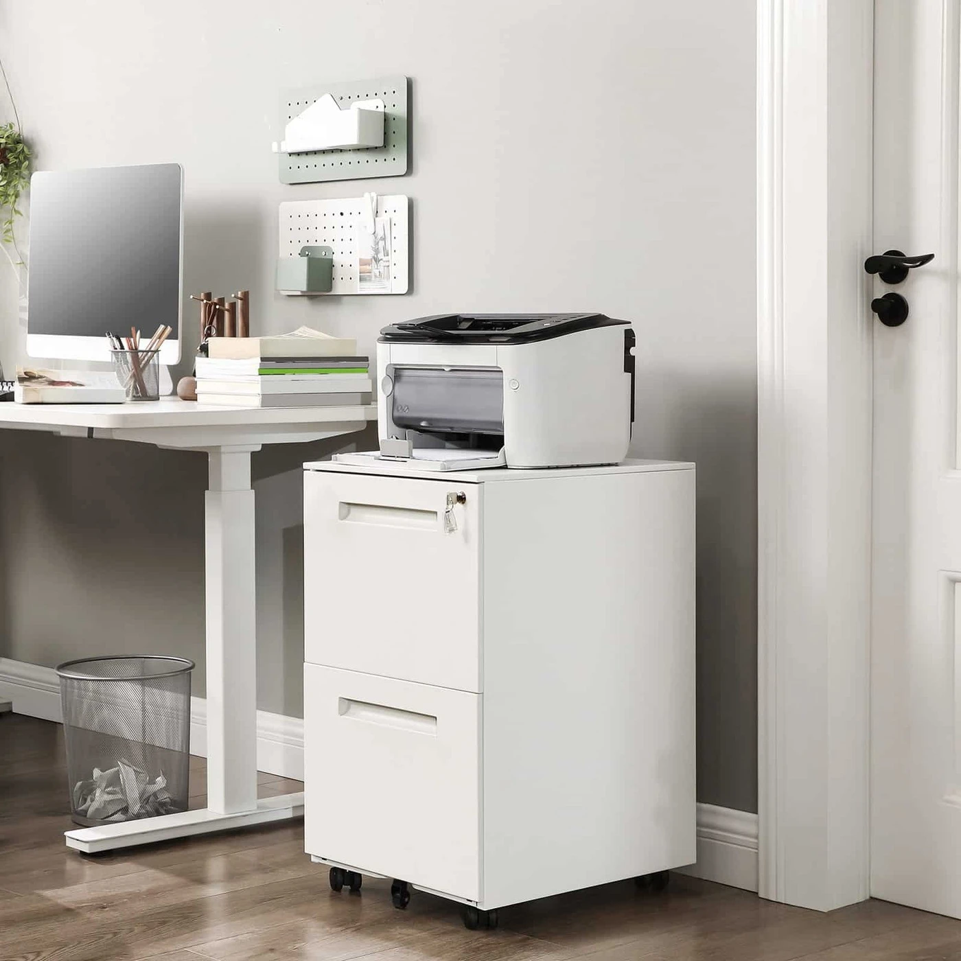 Aprašymas buvo automatiškai išverstas, gali pasitaikyti klaidų.Nesvarbu, ar dirbate namuose, ar biure, tvarkinga darbo vieta daro didelę įtaką jūsų koncentracijai ir produktyvumui. Su šia SONGMICS kartoteka su 2 stalčiais galite sukurti tvarką savo darbo vietoje ir tuo pačiu optimizuoti savo darbo laiką. Tinka įvairioms pakabinamoms dildėms: Skirtingai nuo įprastų mobilių konteinerių, kiekvienas mūsų kartotekos stalčius turi po 1 reguliuojamą strypą. Taip pat pagal poreikį galite rūšiuoti ir saugoti sustabdymo failus įvairiais formatais (A4, raidės, legal ar F4 formatu) Tvirtas ir praktiškas: dokumentai, kanceliarinės prekės, asmeniniai daiktai, viskas, ko reikia darbe, ras vieną vietą šiame mobiliajame konteineryje. Į kiekvieną iš 2 didelių stalčių galima pakrauti iki 23 kg, o pilni išilginiai užtikrina didesnį komfortą atidarant ir uždarant stalčius. Plieninė konstrukcija taip pat tokia tvirta, kad šią kartoteką galėsite naudoti daugelį metų.Informacija apie gaminį: Spalva: balta Medžiaga: plienas Dydis: 39 x 50 x 69,5 cm (P x P x A) Svoris: 19,4 kg Maks. Vieno stalčiaus apkrova: 23 kg Pristatymo komplektas: 1 x mobilus konteineris su 2 stalčiais 1 x priedų krepšys 1 x instrukcijos (DE, EN, IT, FR, ES) SONGMICS Pastabos: Netraukite stalčių, kuriuose yra daiktų vienu metu kad spintelė neapvirstų vengti.