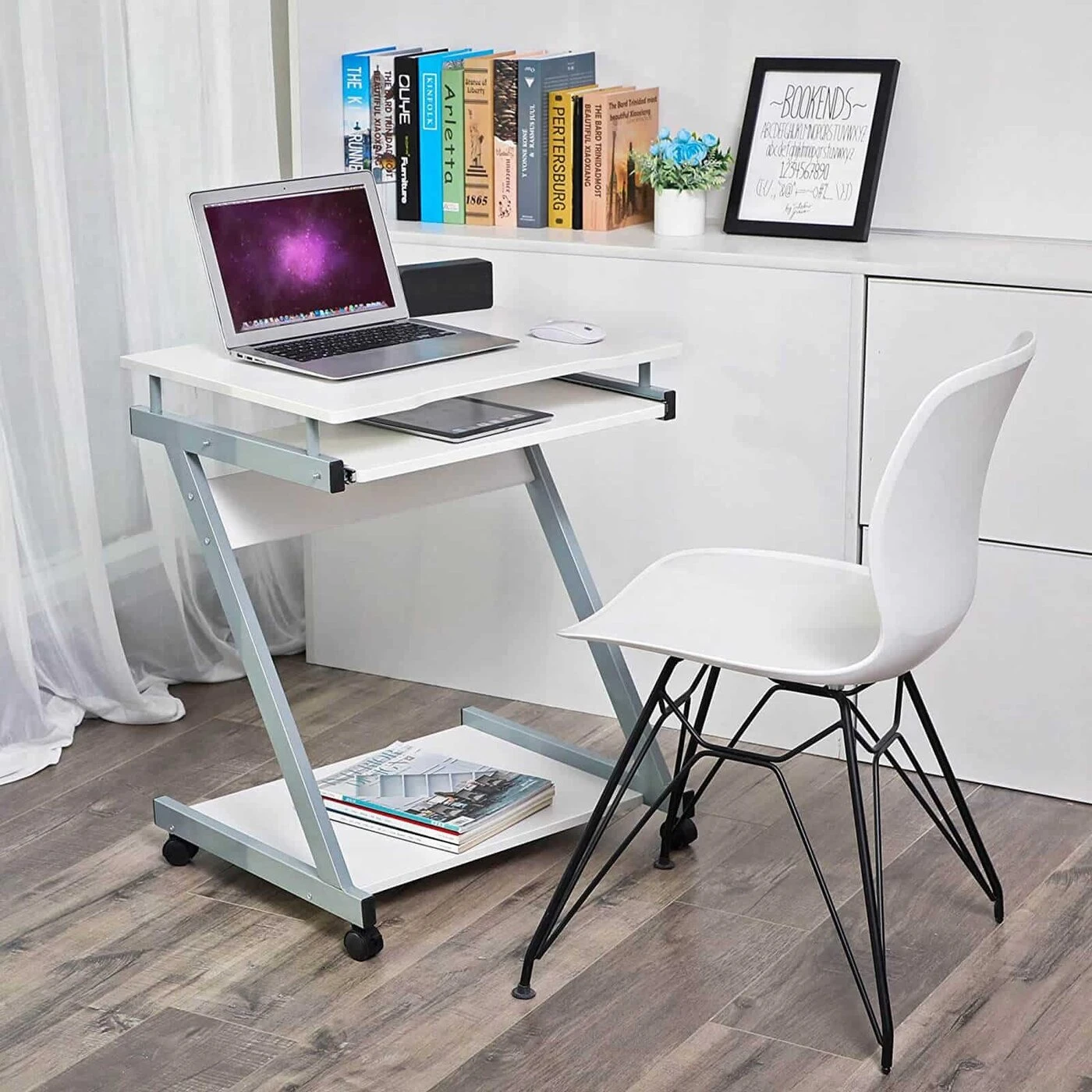 Aprašymas buvo automatiškai išverstas, gali pasitaikyti klaidų.VASAGLE itin kompaktiškas kompiuterio stalas siūlo modernią eleganciją ir funkcionalumą tuo pačiu metu. Aiškios ir elegantiškos linijos užtikrina išskirtinį dizainą. Su klaviatūros lentyna ir 4 ratukais nešiojamojo kompiuterio stalas yra labai praktiškas, patrauklus ir gali būti laisvai judinamas ant ratukų. Labai gražiai atrodo ir užima mažai vietos. Lengva prižiūrėti – baldams prižiūrėti geriausia naudoti minkštą, nepūkuotą audinį arba odinį audinį. Nuvalykite paviršius šiek tiek drėgnu. Pastabos: 1. Montavimo metu statytojai turi būti pilnamečiai. Ir surinkimo metu turite būti kantrūs. 2. Surinkimui palengvinti rekomenduojama naudoti elektroninį atsuktuvą (nepridedamas). 3. Visos medinės lentos ir varžtai sunumeruoti, prieš surinkimą išsiaiškinkite tinkamas dalis pagal instrukciją. 4. Surinkdami turite tiksliai laikytis instrukcijų, kad nesumaišytumėte lentų. 5. Kiekvienam varžto tipui pateikiamas atsarginis varžtas.Išsami informacija apie gaminį: Medžiaga: milteliniu būdu dengtas geležinis vamzdis + medžio drožlių plokštė + melamino danga Matmenys: 60 x 73 x 48 cm (P x A x G) Medienos drožlių plokštės storis: 15 mm Grynasis svoris: 10 kg Bruto svoris: 10,5 kg Spalva: balta Pakuotės turinys : 1 x kompiuterio stalas 1 x metalinių priedų rinkinys 1 x vadovas (DE, UK, FR, IT, ES)