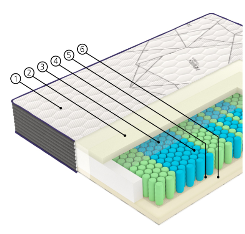 5. Baldinis tinklelis – apsauginis tarpinis sluoksnis, atskiriantis spyruoklių bloką nuo minkštų dangos sluoksnių. Padeda išvengti ankstyvo sudedamųjų dalių susidėvėjimo.