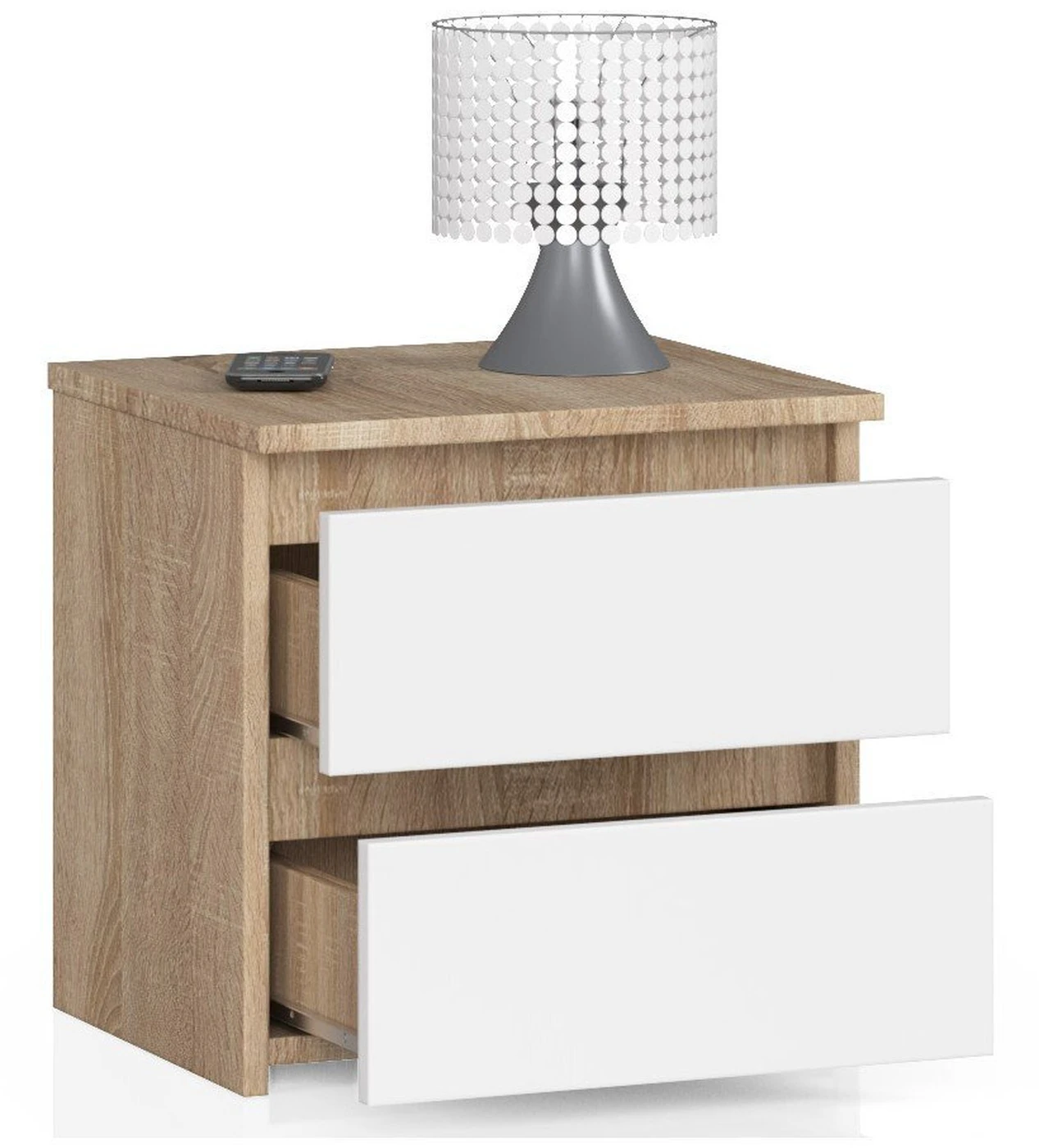 Aprašymas buvo automatiškai išverstas, gali pasitaikyti klaidų. Ši kompaktiška ir stilinga komoda bus puikus pasirinkimas kaip naktinis staliukas ar papildoma daiktų laikymo vieta. Dviejuose stalčiuose tilps visi daiktai, kurių nenorime matyti, nuo dokumentų iki drabužių, o įdomios spalvos suteiks žavesio bet kokiam interjerui. Smėlio spalvos derinys asocijuotas su natūralia mediena, ąžuolo spalva su ryškia, gryna balta ypač tiks skandinaviško stiliaus kambariuose, taip pat suteiks jaukų charakterį minimalistiniam ir moderniam interjerui. Tokia patogi spintelė yra nuolat, kasdien naudojamas baldas – todėl ši komoda buvo pagaminta iš patikimo gamintojo atsparios pažeidimams laminuotos plokštės. Dėl to jis nebijo įbrėžimų ir įbrėžimų. Siekiant geriau apsaugoti nuo pažeidimų, komodos kraštai papildomai padengti ABS apvadu , kuri juos sustiprina ir apsaugo nuo atsitiktinių sužalojimų. Stalčiai su laminuotų plokščių fasadais juda metalinio volelio dėka kreiptuvai, užtikrinantys sklandų judėjimą, be kliūčių, norint išimti daiktus iš stalčių, visada buvo be vargo. Komoda skirta savarankiškai surinkti – jūs tai darote nereikia kviesti specialistų komandos, tereikia per trumpą laiką surinkti baldus namuose. Kad procesas būtų lengvas ir malonus, kartu su siunta pateikiama išsami instrukcija su išsamiu visų žingsnių aprašymu ir papildomais grafikais. Baldai suteikiama 24 mėnesių garantija.