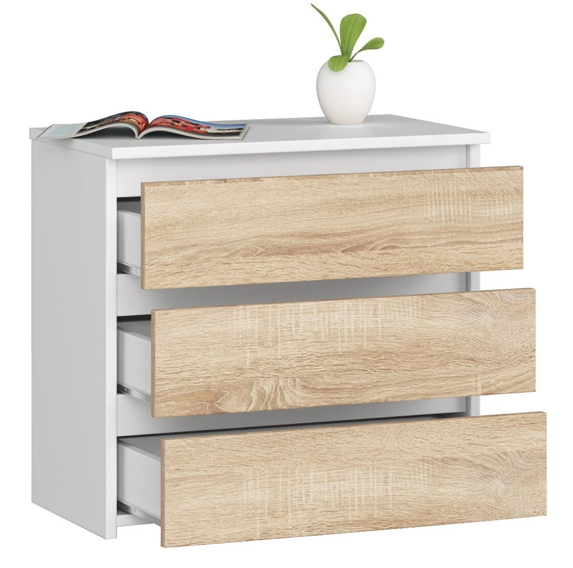 Aprašymas buvo automatiškai išverstas, gali pasitaikyti klaidų. - Komoda pagaminta iš aukštos kokybės 16 mm laminuotos plokštės Kronospan, atsparios dilimui - Stalčių fasadai pagaminti iš laminuotos plokštės - Stalčiai juda ant metalinių ritinėlių kreiptuvų - Kraštai padengti ABS briauna, užtikrinančia aukštą apsaugą nuo pažeidimų - Savarankiškai surenkama komoda - Pridedamos instrukcijos – 24 mėnesių garantija