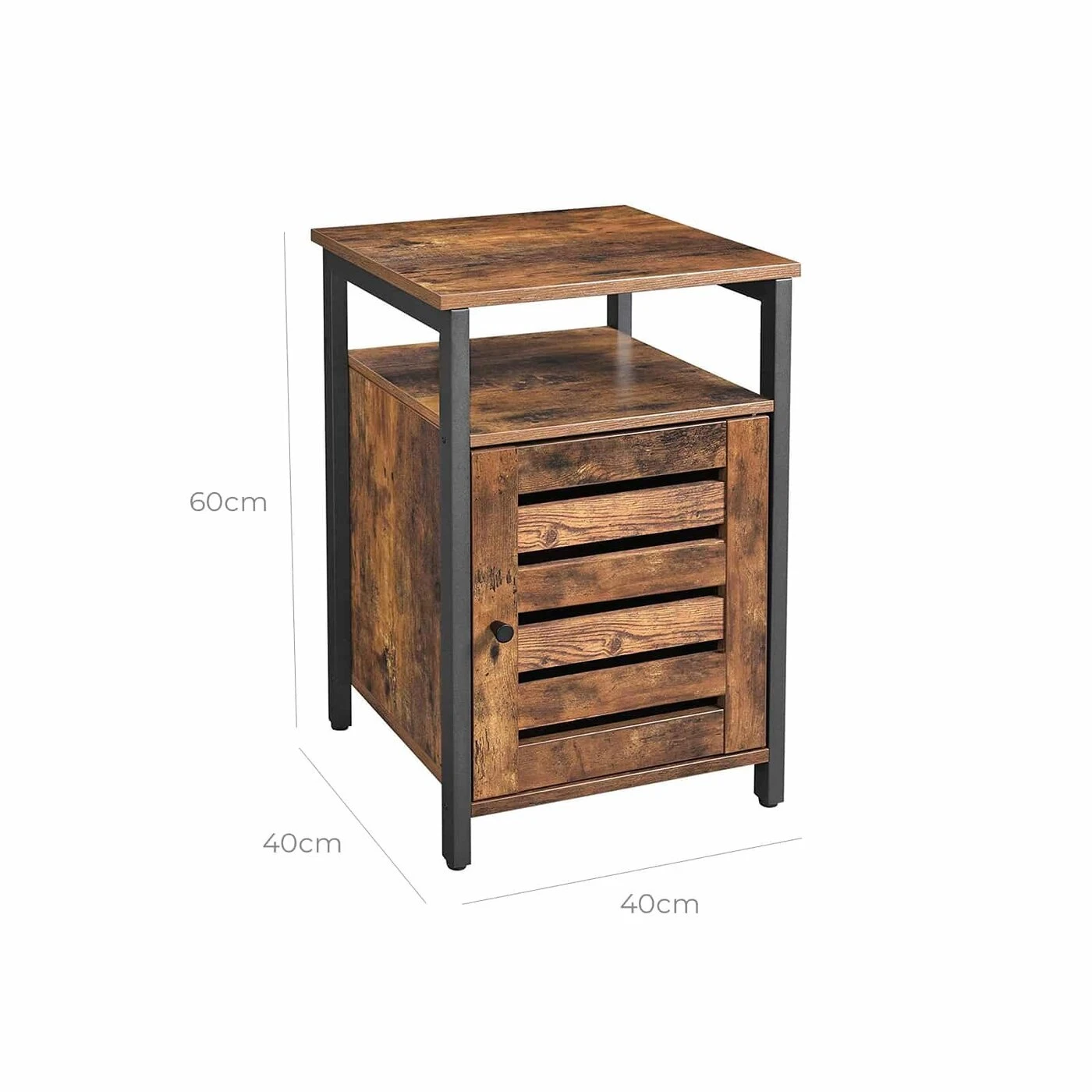 Aprašymas buvo automatiškai išverstas, gali pasitaikyti klaidų.Išsami informacija apie gaminį: - Spalva: Vintage/Tamsiai ruda - Medžiaga: Medienos drožlių plokštės, Geležis - Dydis: 40 x 40 x 60 cm (P x P x A) - Svoris: 10,5 kg - Maksimali bendra statinė apkrova: 20 kg - Maks. statinis krūvis Vidinio lentynos lygio keliamoji galia: 15 kg Pristatymo komplektacija: - 1 x naktinis staliukas su žaliuzėmis - 1 x krepšys priedams - 1 x vadovas (DE, EN, ES, FR, IT) VASAGLE pastabos: - Padėkite gaminį vieta, kur niekas nėra veikiamas karščio, tiesioginių saulės spindulių ar drėgmės.- Saugokite gaminį nuo aštrių ar smailių daiktų ir ėsdinančių medžiagų.- Neleiskite vaikams lipti ant šio gaminio.