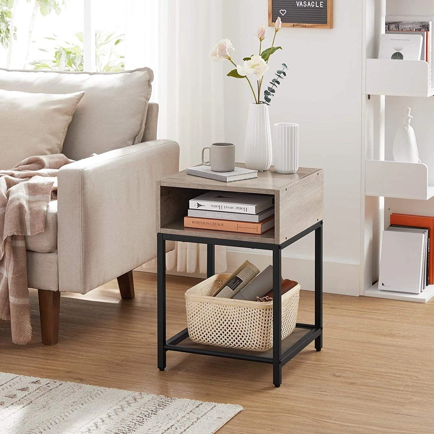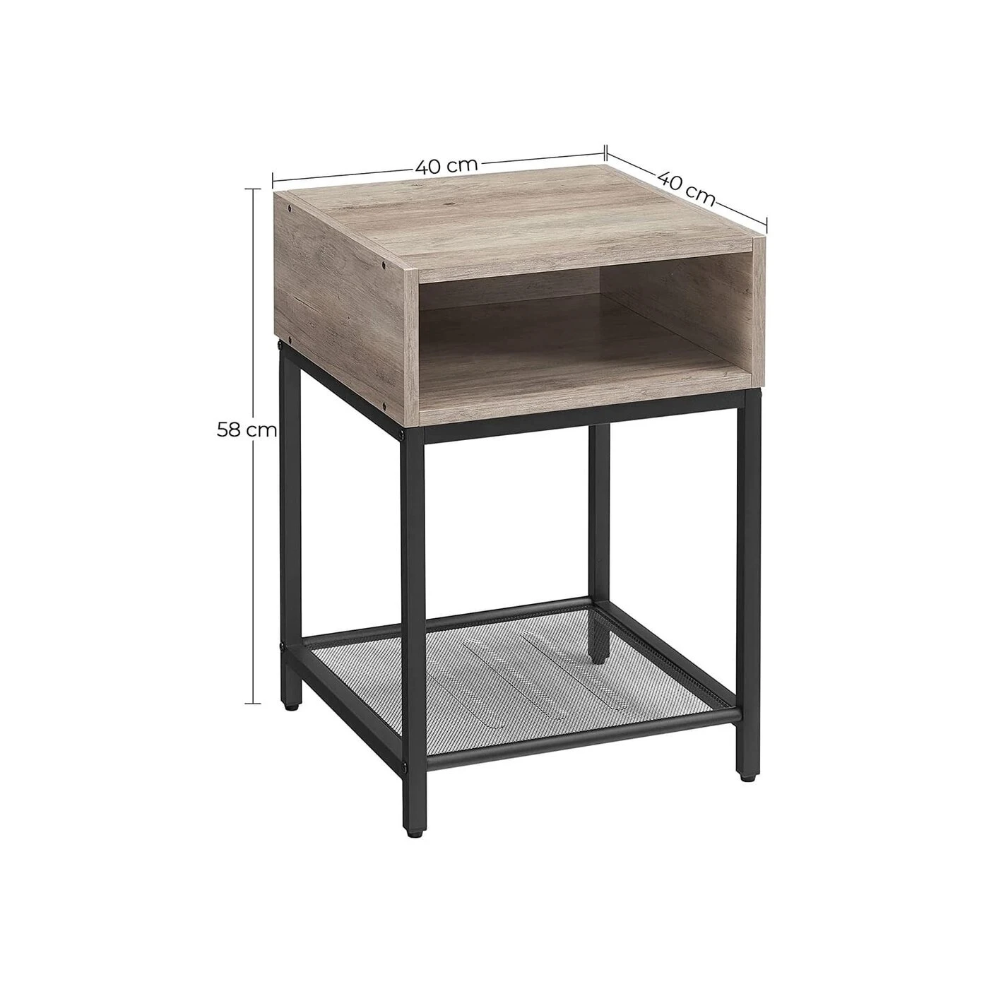 Aprašymas buvo automatiškai išverstas, gali pasitaikyti klaidų.Prekės informacija: - Spalva: pilkai juoda - Medžiaga: medžio drožlių plokštė, plienas - Dydis: 40 x 40 x 58 cm (P x P x A) - Svoris: 6,5 kg - Maksimali statinė paviršiaus apkrova: 20 kg - Maks. statinė atviro skyriaus apkrova: 20 kg - Maksimali grotelių lentynos statinė apkrova: 5 kgPristatymo komplektas: - 1 x šoninis staliukas - 1 x priedų paketas - 1 x vadovas (DE, EN, ES, FR, IT) VASAGLE Pastabos: - Saugumo sumetimais vaikams draudžiama lipti ant gaminio ar žaisti su juo .