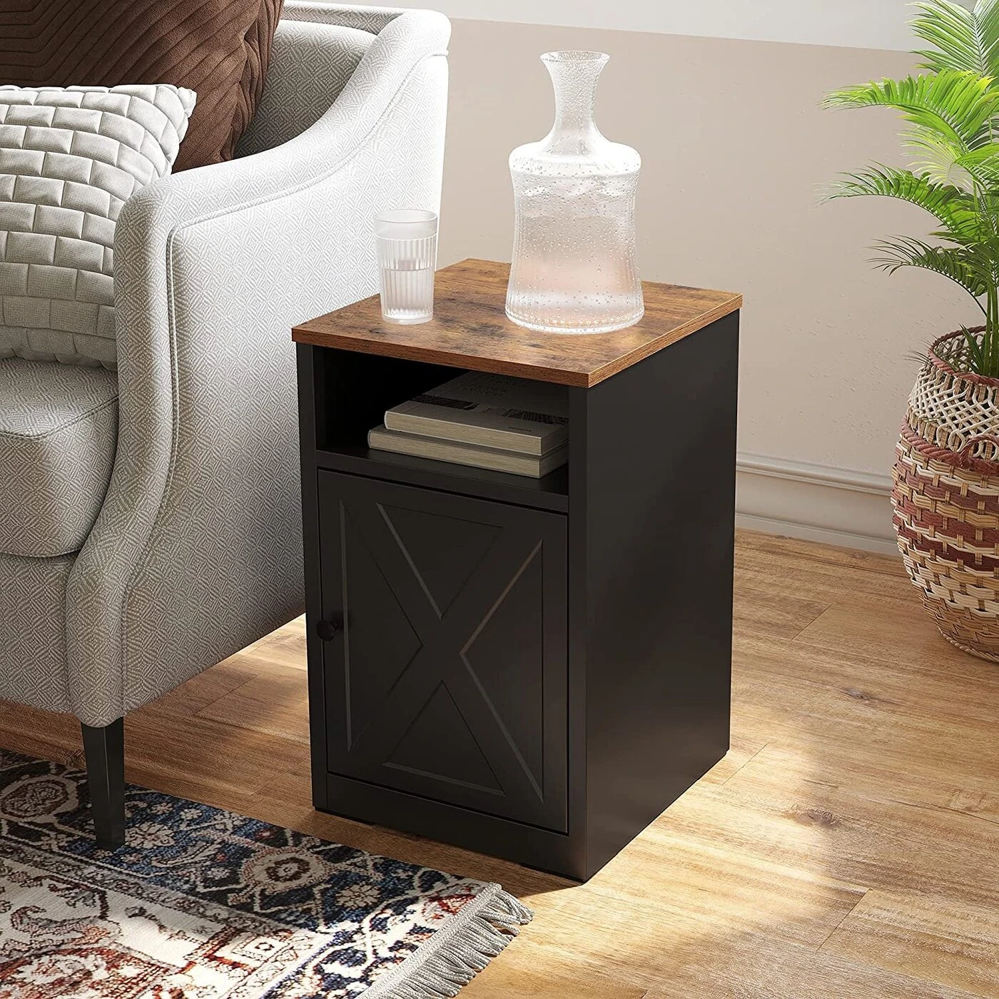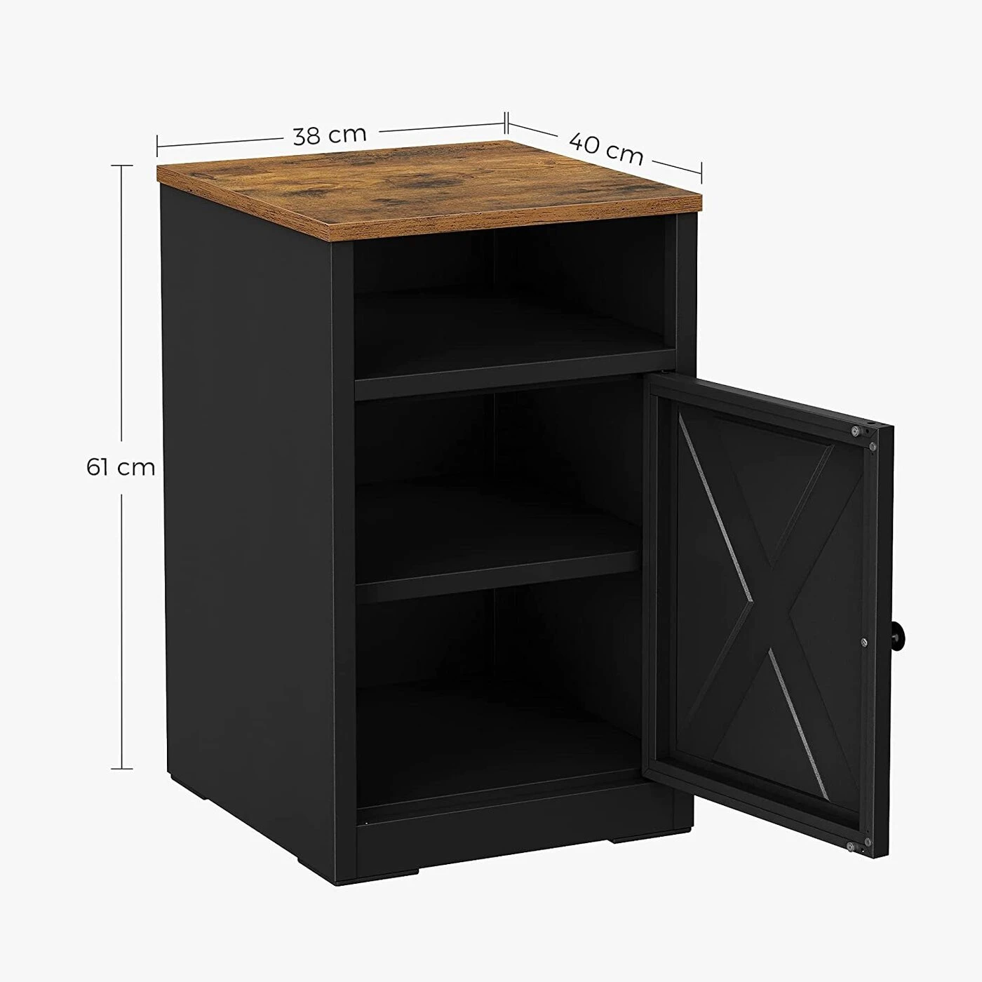 Aprašymas buvo automatiškai išverstas, gali pasitaikyti klaidų.Jaukaus miego vadovas: pirmiausia patogumas. Lempa ir stiklinė vandens ant viršaus, naktiniai kremai atvirame skyriuje ir knygos spintelėje – ant šio naktinio staliuko turėsite viską po ranka!Plojimai už tvirtumą: šis stalas turi atitikti visus jūsų poreikius, tiesa? Tvirtas plieninis rėmas ir patvarios medžio drožlių plokštės užtikrina patikimą tvirtumą ir įdomią išvaizdą – tai tikrai nuramins!Informacija apie gaminį: Spalva: vintažinė ruda-juoda Medžiaga: medžio drožlių plokštė, plienas Dydis: 38 x 40 x 61 cm (P x P x A) Svoris: 10,9 kg Maks. Statinė stalo paviršiaus apkrova: 30 kgMaks. atviro skyriaus statinė apkrova: 20 kgMaks. Statinė reguliuojamos lentynos apkrova: 20 kg Pristatymo komplektas: 1 x šoninis staliukas 1 x priedų pakuotė 1 x instrukcijos