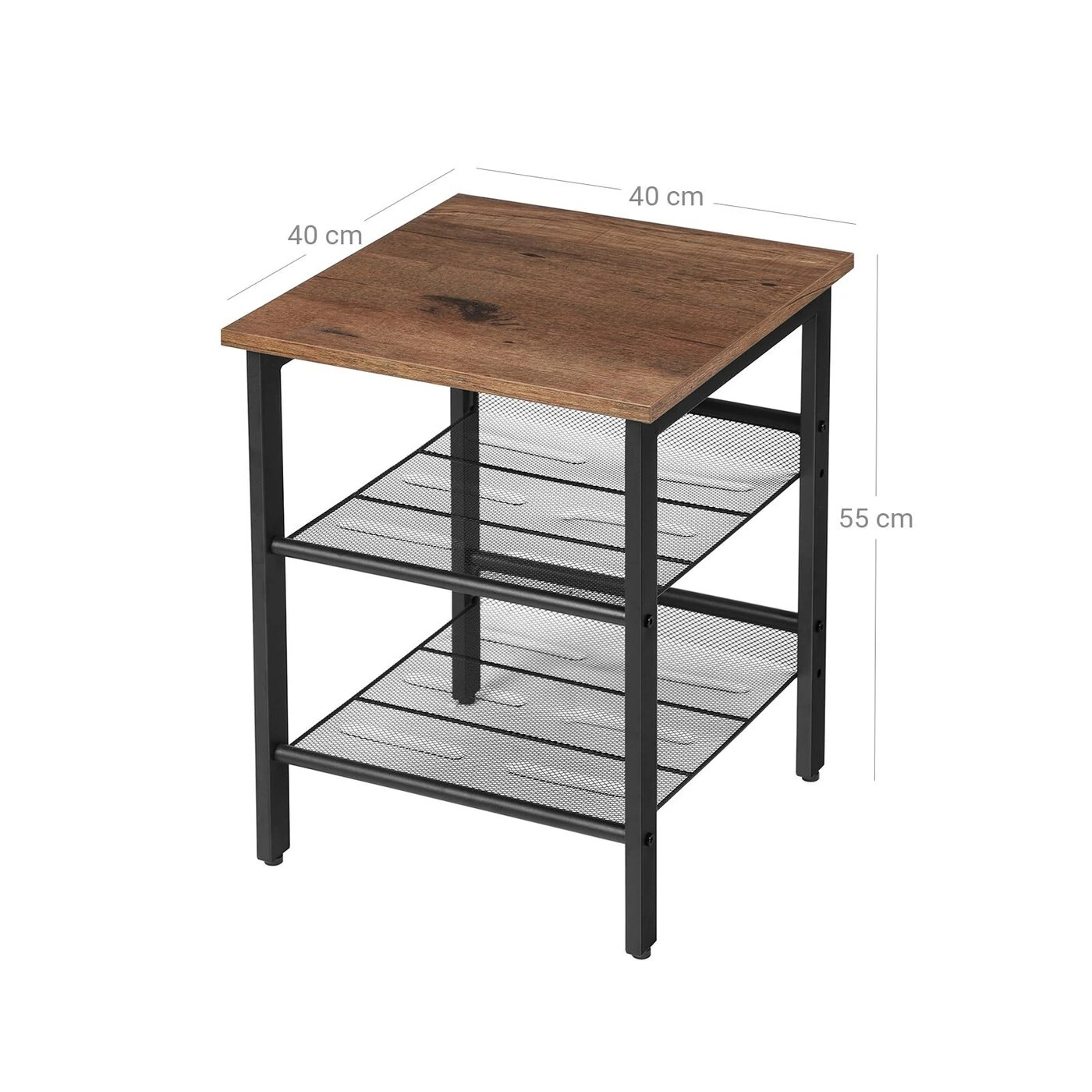 Aprašymas buvo automatiškai išverstas, gali pasitaikyti klaidų.Informacija apie gaminį: - Spalva: Lazdyno juoda - Medžiaga: Medienos drožlių plokštės, Plienas - Dydis: 40 x 40 x 50 cm (P x P x A) - Bendras svoris: 8 kg - Maksimali stalviršio statinė apkrova: 20 kg - Maksimali statinė apkrova tinklelio lentynai: 5 kgPristatymo komplektas: - 2 x šoninis staliukas - 1 x priedų paketas - 1 x vadovas (DE, EN, ES, FR, IT) VASAGLE Pastabos: - Saugumo sumetimais vaikams draudžiama lipti ant gaminio ar žaisti su juo .