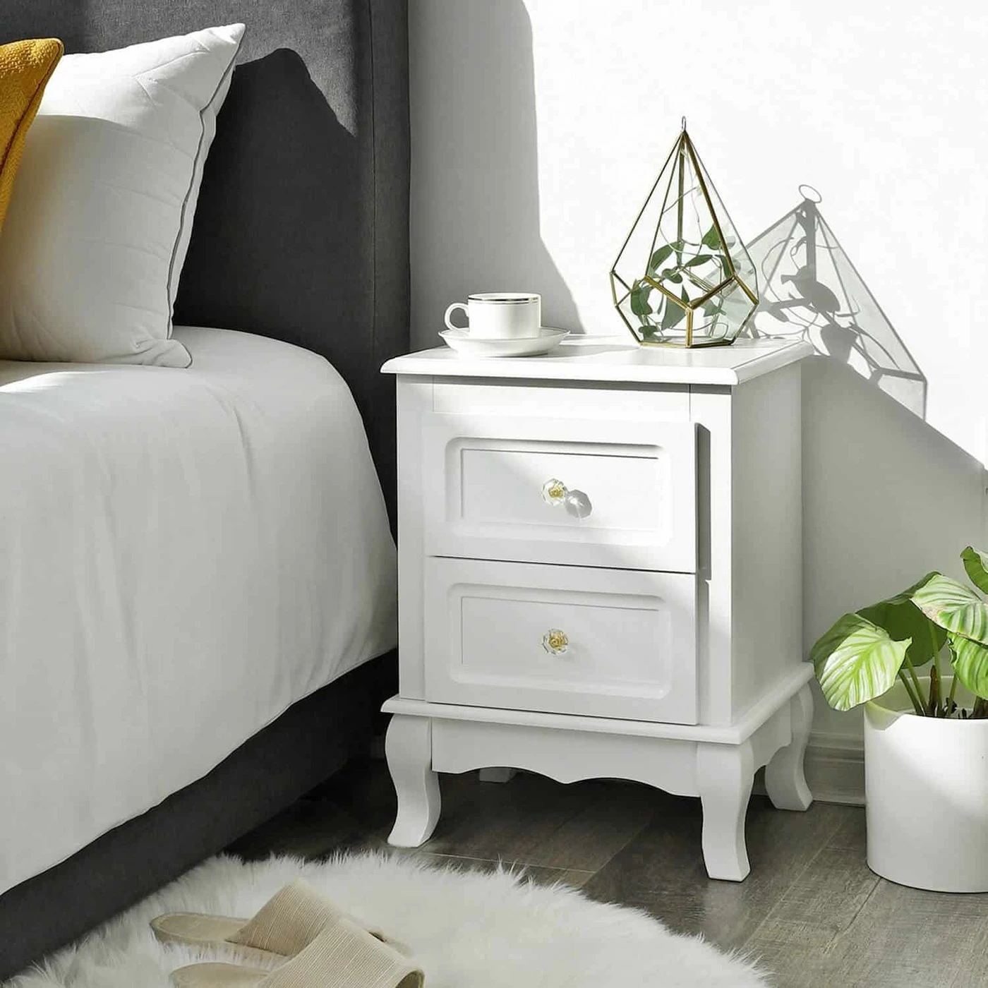 Aprašymas buvo automatiškai išverstas, gali pasitaikyti klaidų.Songmics naktinis staliukas pagamintas iš aukščiausios kokybės MDF plokštės ir kokybiško medžio masyvo. Graži išvaizda ir skoninga balta spalva jūsų namuose sukuria romantišką atmosferą. Taip pat labai praktiška, galite naudoti ir kaip šoninį staliuką ar komodą. Nepriklausomai nuo to, ar miegamajame, ar koridoriuje, jis visur išpjauna dailią figūrą. Jį taip pat lengva nustatyti ir valyti. Kasdienei priežiūrai pakanka minkšto audinio. Naktinis staliukas, taip pat idealus dekoratyvinis aksesuaras jūsų namams! Pastabos: - Nesėdėkite ant naktinio staliuko, kad nesugadintumėte. - Nebandykite priverstinai surinkti naktinio staliuko. Tai sugadins daiktą. Jei turite kokių nors sunkumų, susisiekite su mūsų klientų aptarnavimo tarnyba. - Kad nebūtų pažeisti iš anksto išgręžti sriegiai kojelėse ir kad varžtai nebūtų kreivi, varžtus įsukite tik surinkdami kojeles, kai visos išgręžtos skylės yra išlygintos.Išsami informacija apie gaminį: - Matmenys: 38,5 x 52,5 x 30,5 cm (P x A x A) - Vidiniai stalčiaus matmenys: 25 x 12 x 23 cm (P x A x G) - Medžiaga: MDF plokštė + mediena Pakuotės turinys: - 2 x naktiniai staleliai – 1 x instrukcijos