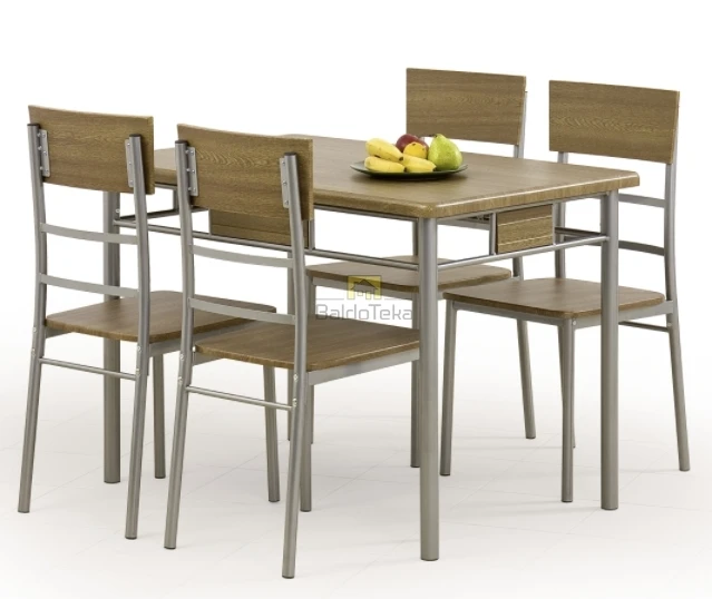 Stalas su 4 kėdėmis – riešuto spalvos, modernus dizainas