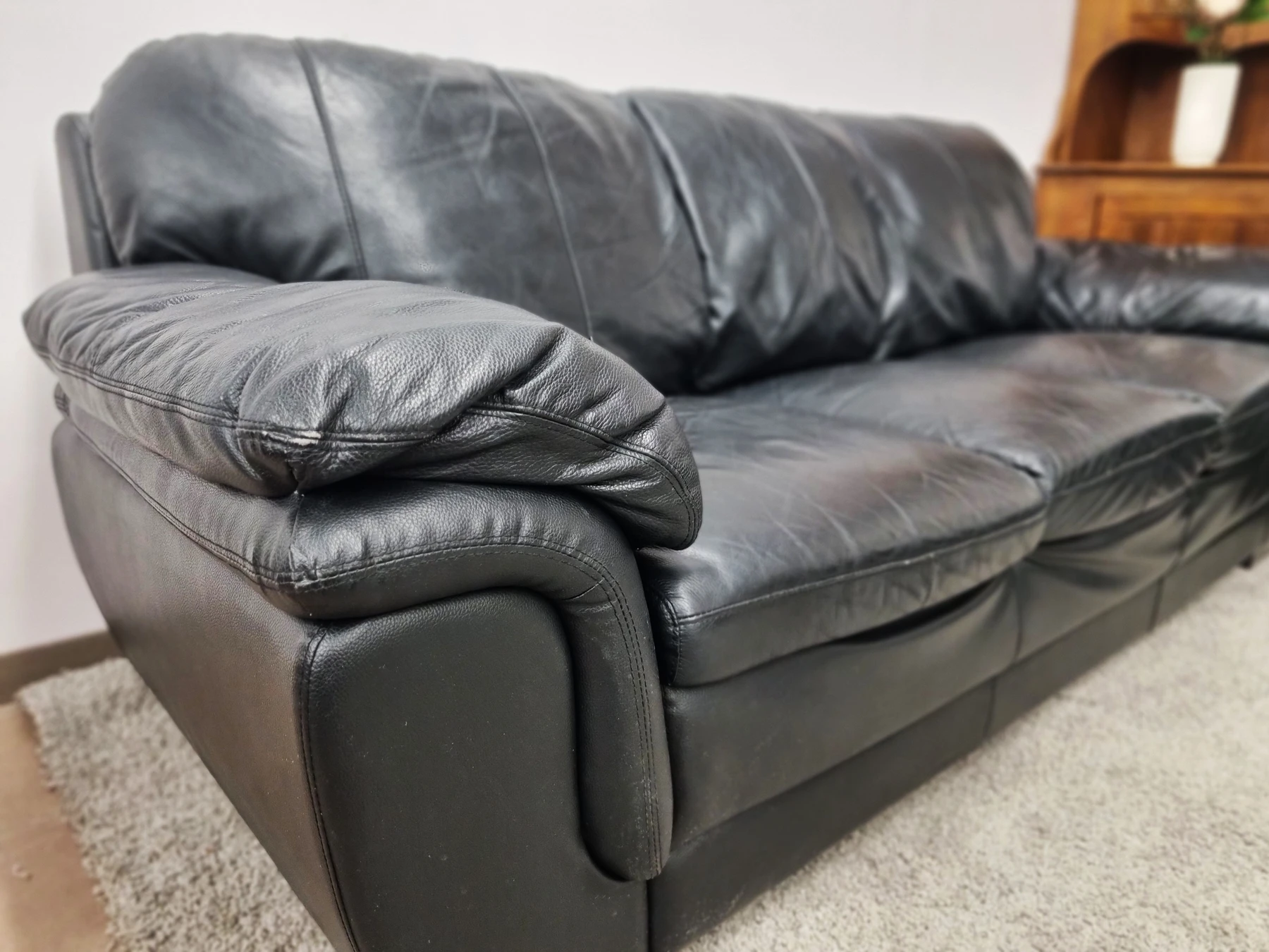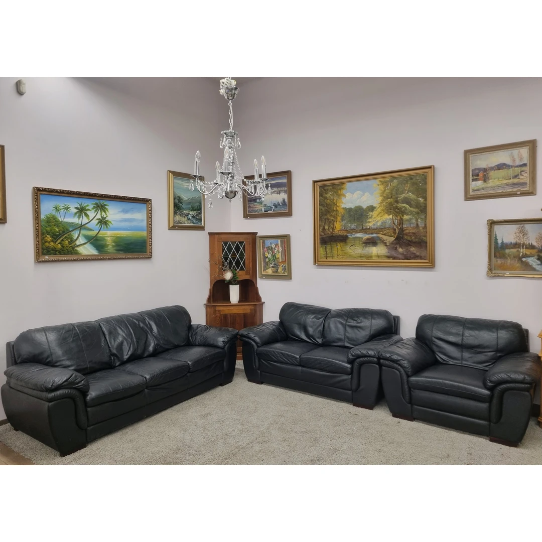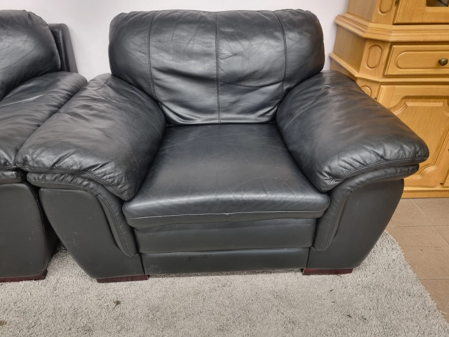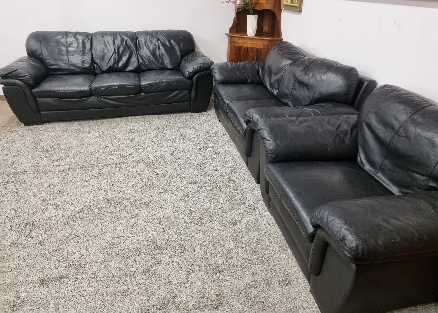 Parduodami naudoti, bet kokybiški juodos spalvos odiniai baldai: Plotis: ;trivietė 2.25m, dvivietė 1.75m
