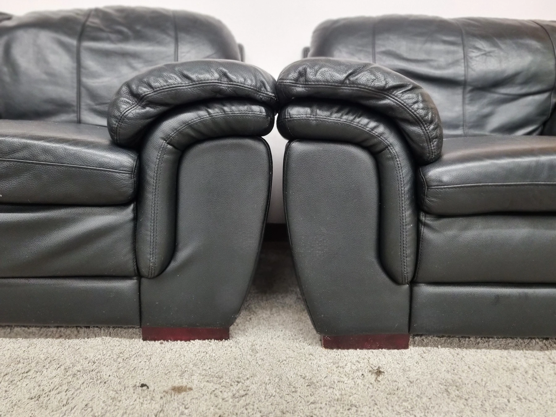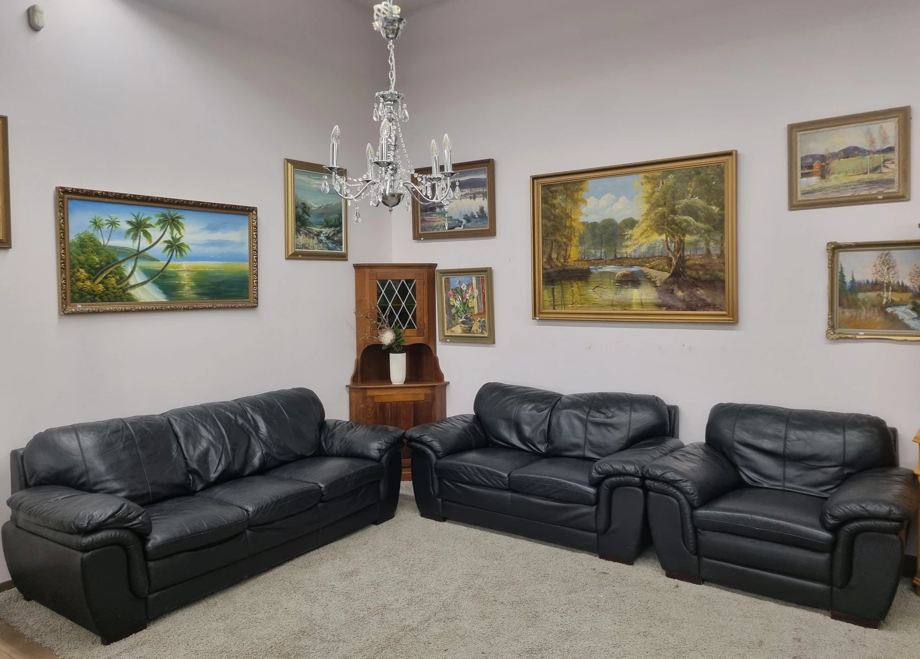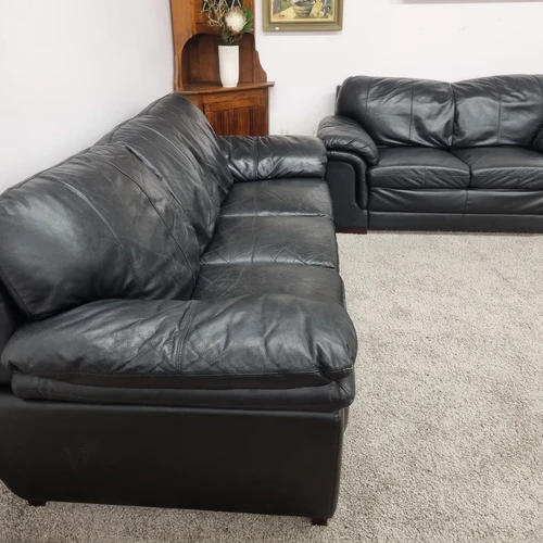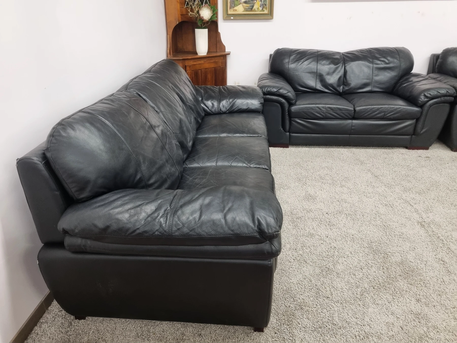 Parduodami naudoti, bet kokybiški juodos spalvos odiniai baldai: Plotis: ;trivietė 2.25m, dvivietė 1.75m