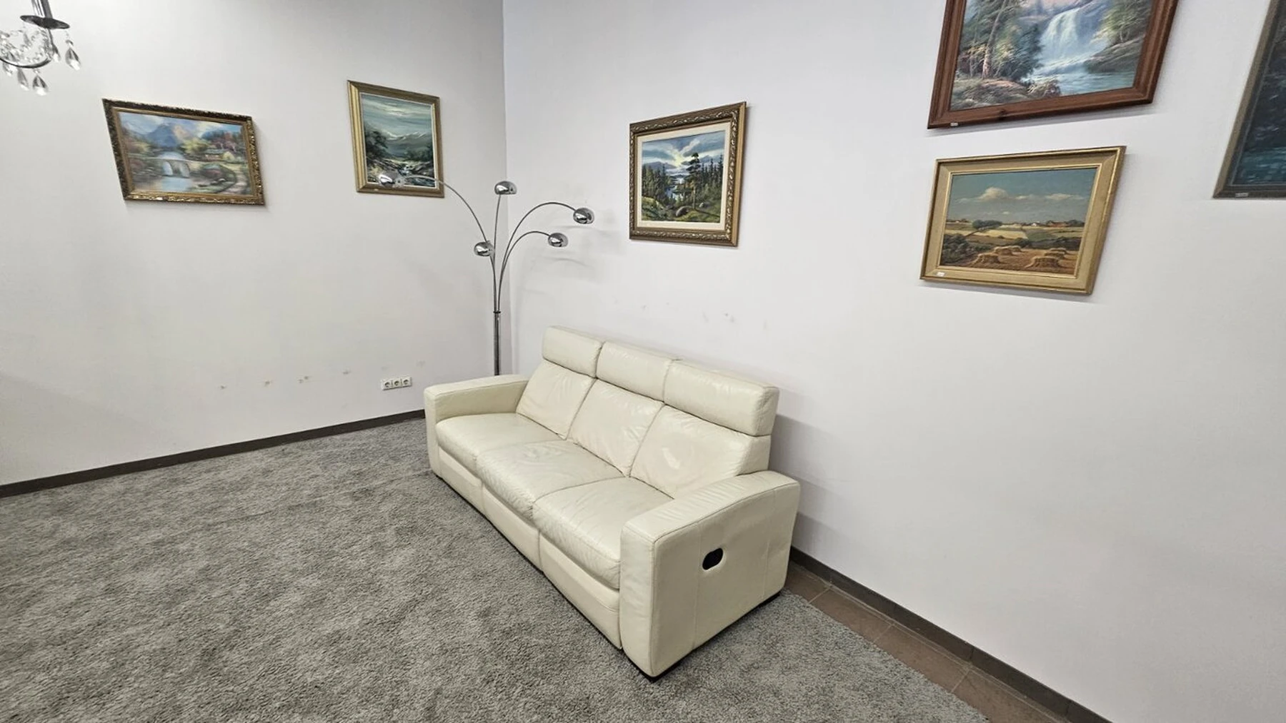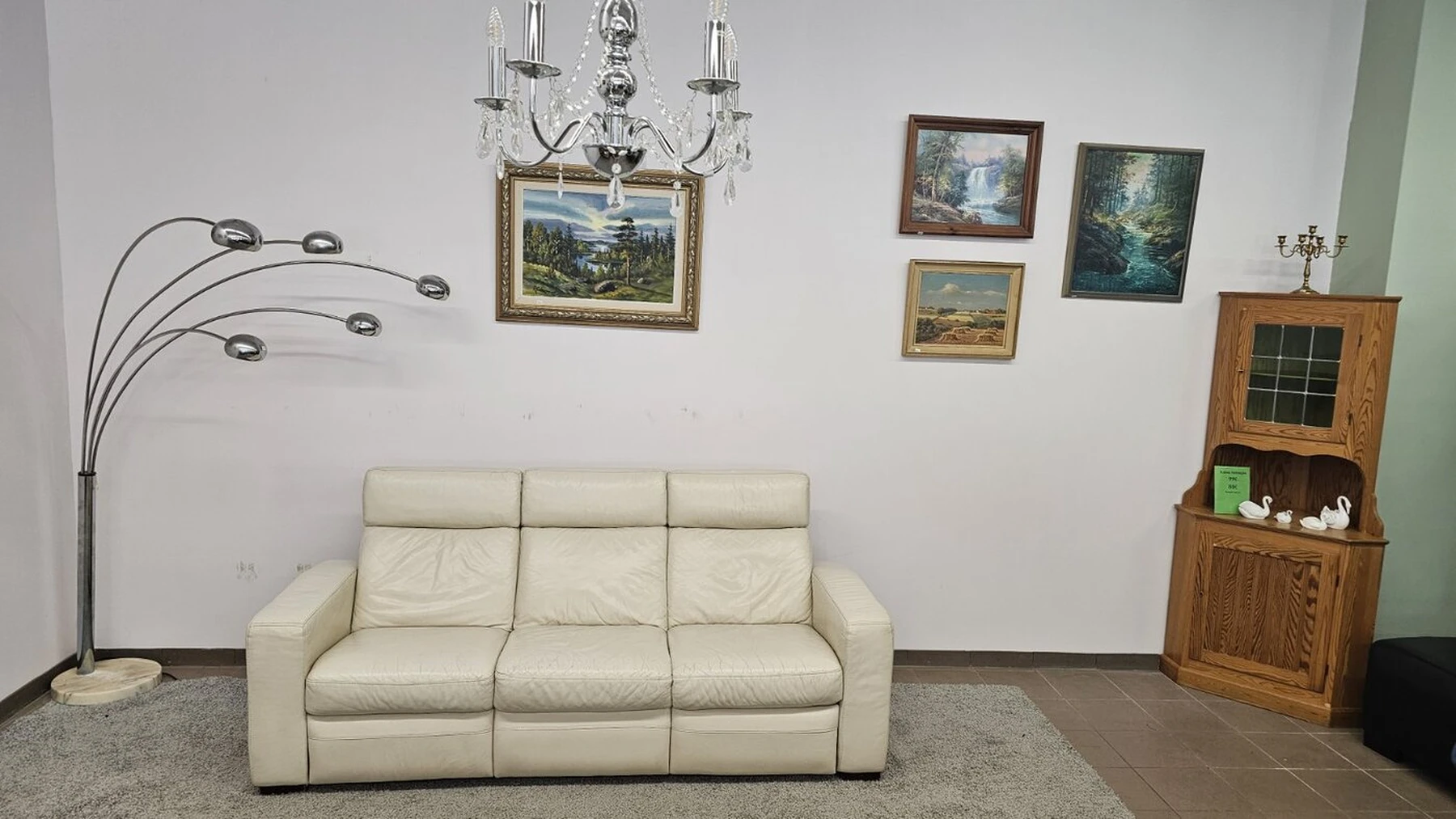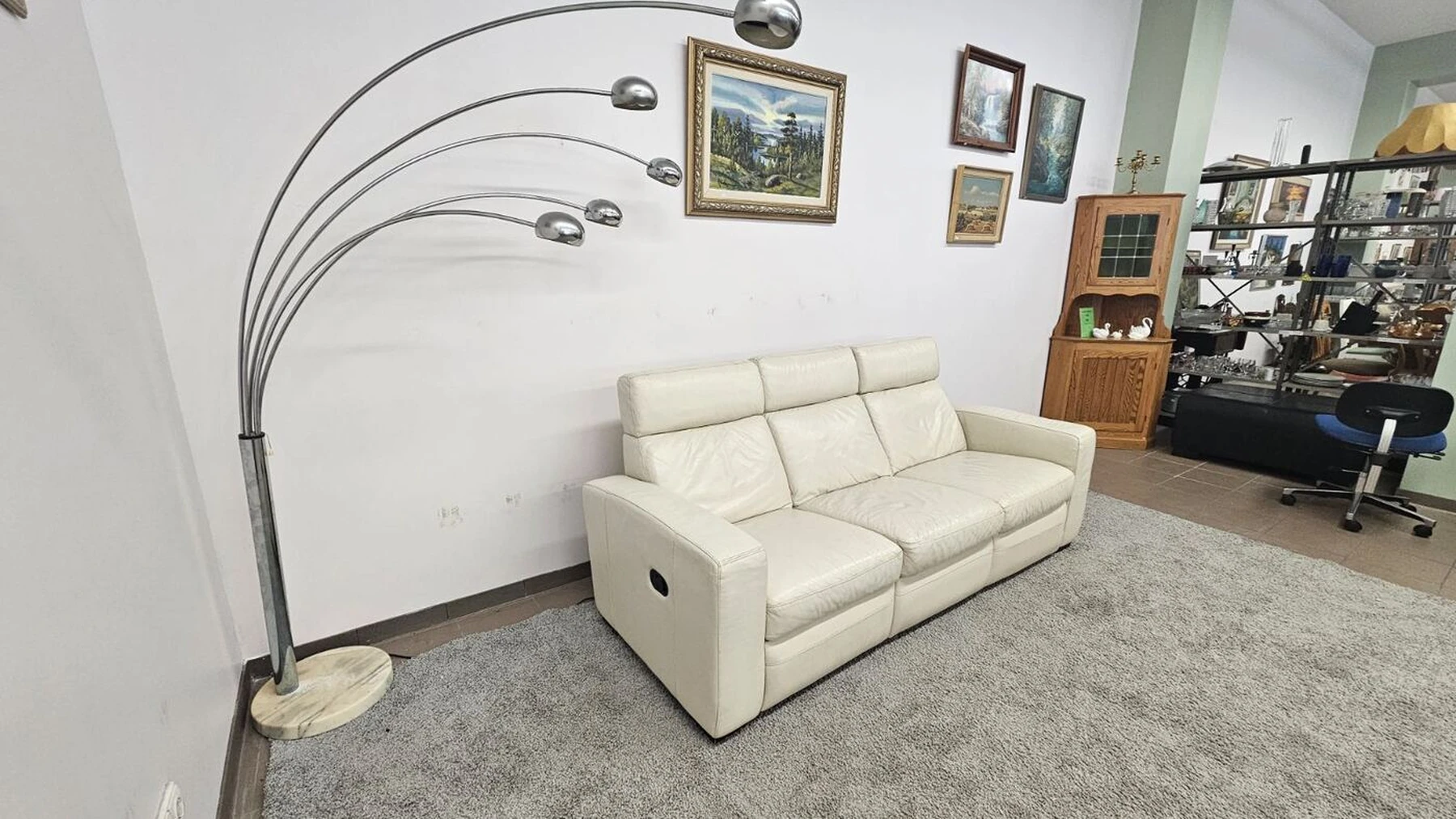 Kreminės spalvos sofa su Relax funkcija. Matmenys: 2.15m.