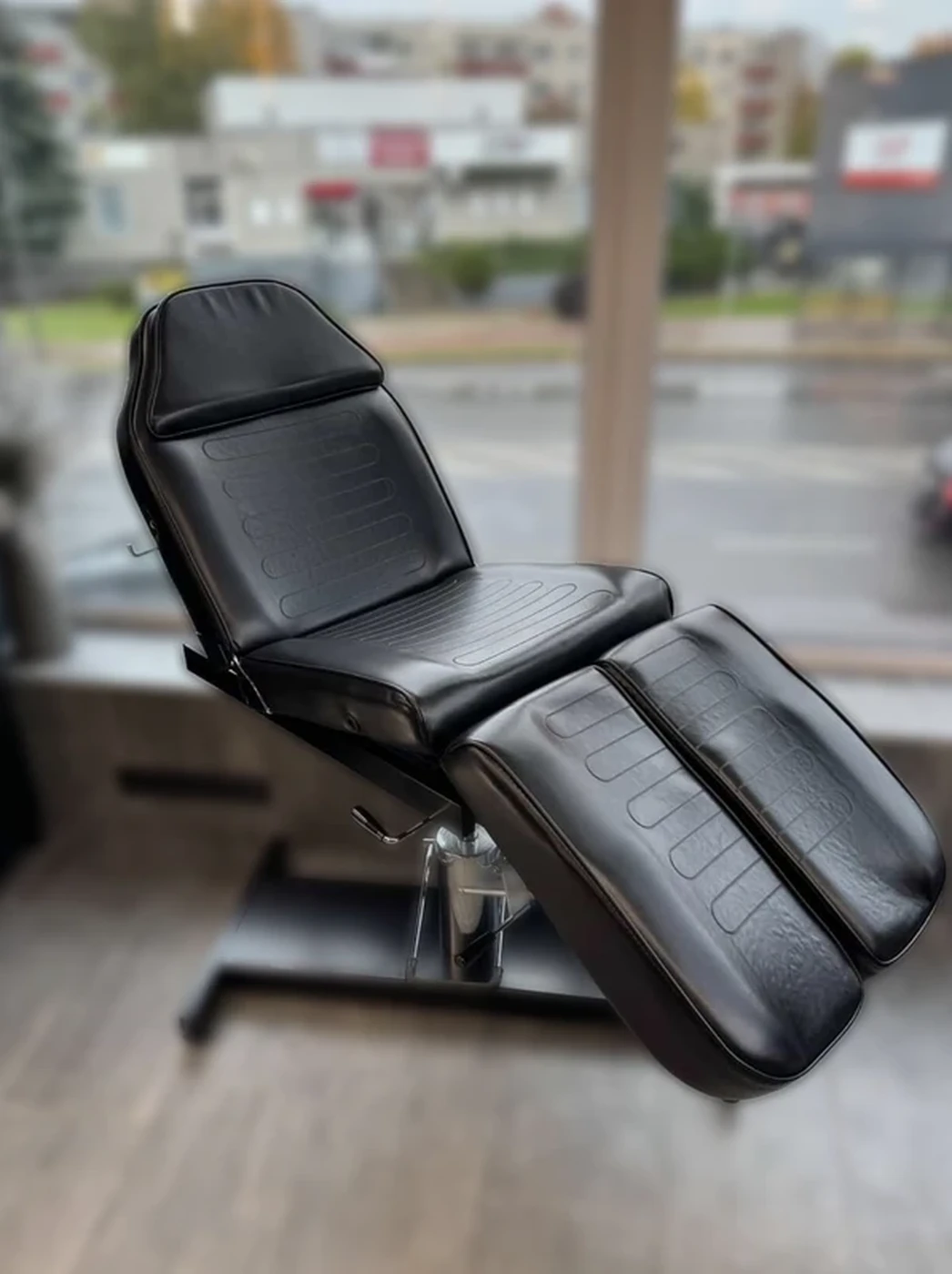 Naudota hidraulinė kosmetologinėIlgis ~ 183 cmPlotis ~ 62 cmPasukama hidraulinė sėdynė.Hidrauliškai reguliuojamas sėdynės aukštis.Rankiniu būdu reguliuojamas atlošo ir kojų atramos kampas.
