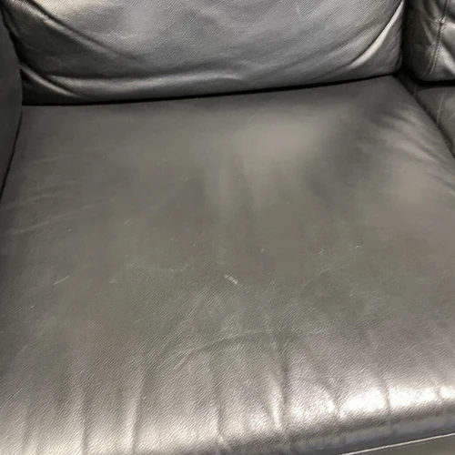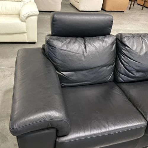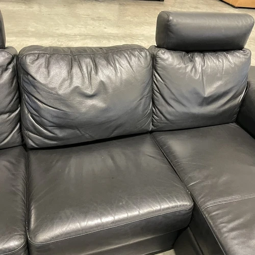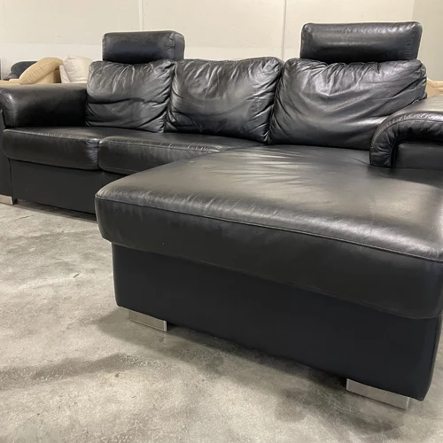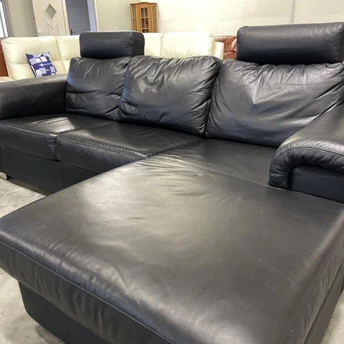 Natūralios odos 250 cm x 162 cm ilgio kampas. Nugara taip pat natūralios odos. Viršutinės pagalvės ir galvos atlošai nusiima. Kaip naujas