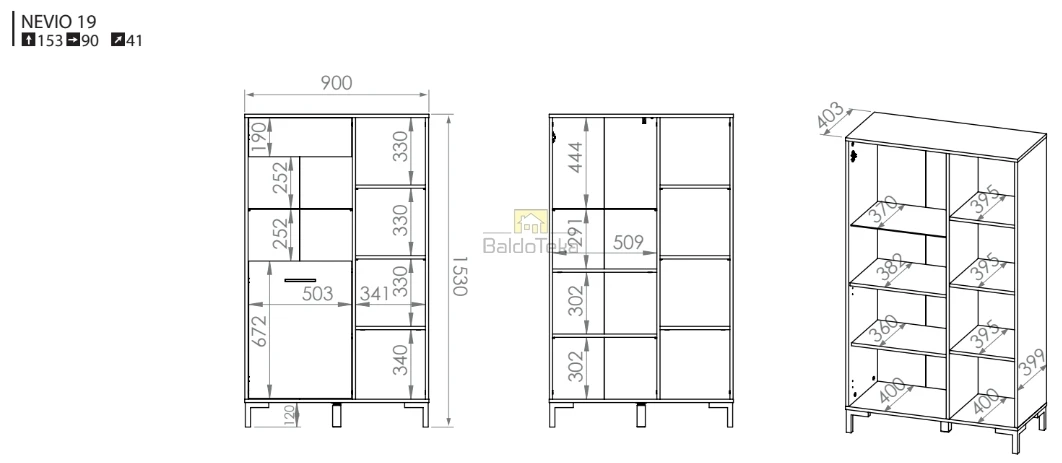 Plotis/Aukštis/Gylis: 90/153/40 cm.