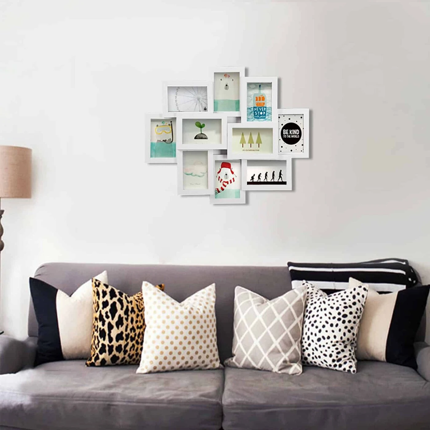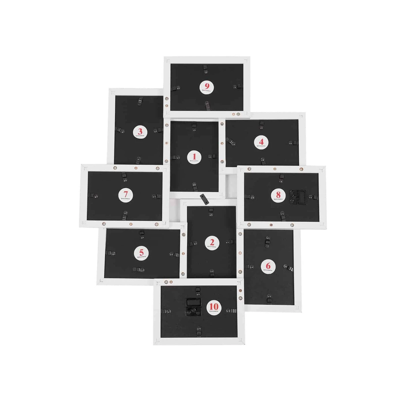 Aprašymas buvo automatiškai išverstas, gali pasitaikyti klaidų.Užpildykite šį rėmelį mėgstamomis nuotraukomis ir pakabinkite. Medienos raštų nuotraukų rėmelis papuoš jūsų sieną ir visada primins gražias akimirkas.Informacija apie gaminį: - Bendri matmenys: 60 x 49,3 x 3,6 cm (P x A x A) - Nuotraukos matmenys: 10 x 15 cm - Rėmo spalva: balta - Medžiaga: MDF, polistirenas - Svoris: 1,8 kg Pristatymo komplektas: - 10 x paveikslų rėmeliai - 1 x maišelis furnitūros - 1 x maišas medinių kaiščių SONGMICS Pastabos: - Oro burbuliukų buvimas ir prastas šviesos pralaidumas permatomame paveikslėlio dangtelyje yra dėl apsauginės plėvelės. Prieš naudodami nuimkite dvi apsaugines plėveles. - Koliažo rėmelis susideda iš kelių nuotraukų rėmelių. Šį modelį reikia surinkti ir pakabinti ant sienos; nuotraukų rėmeliai negali būti naudojami atskirai.