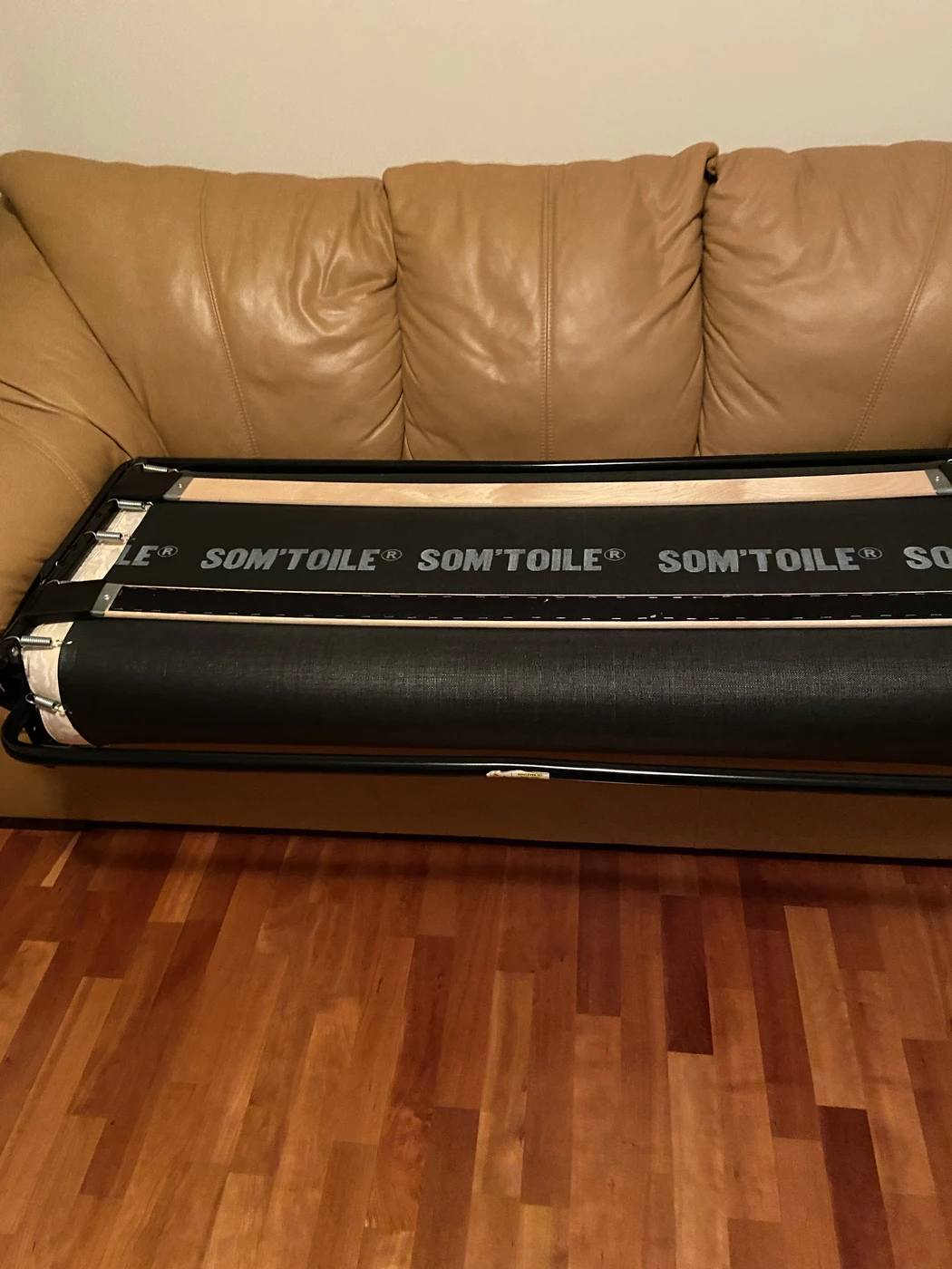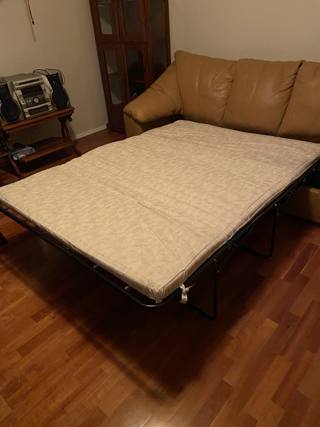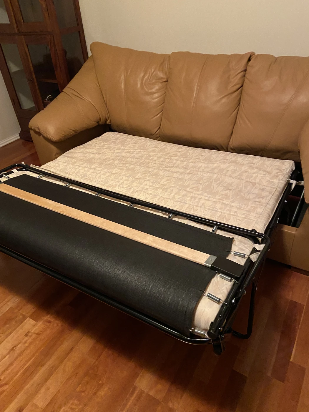Bukle labai gera, miegojomo fukcija gera, mazai naudota, odinis, garstyciu spalva.