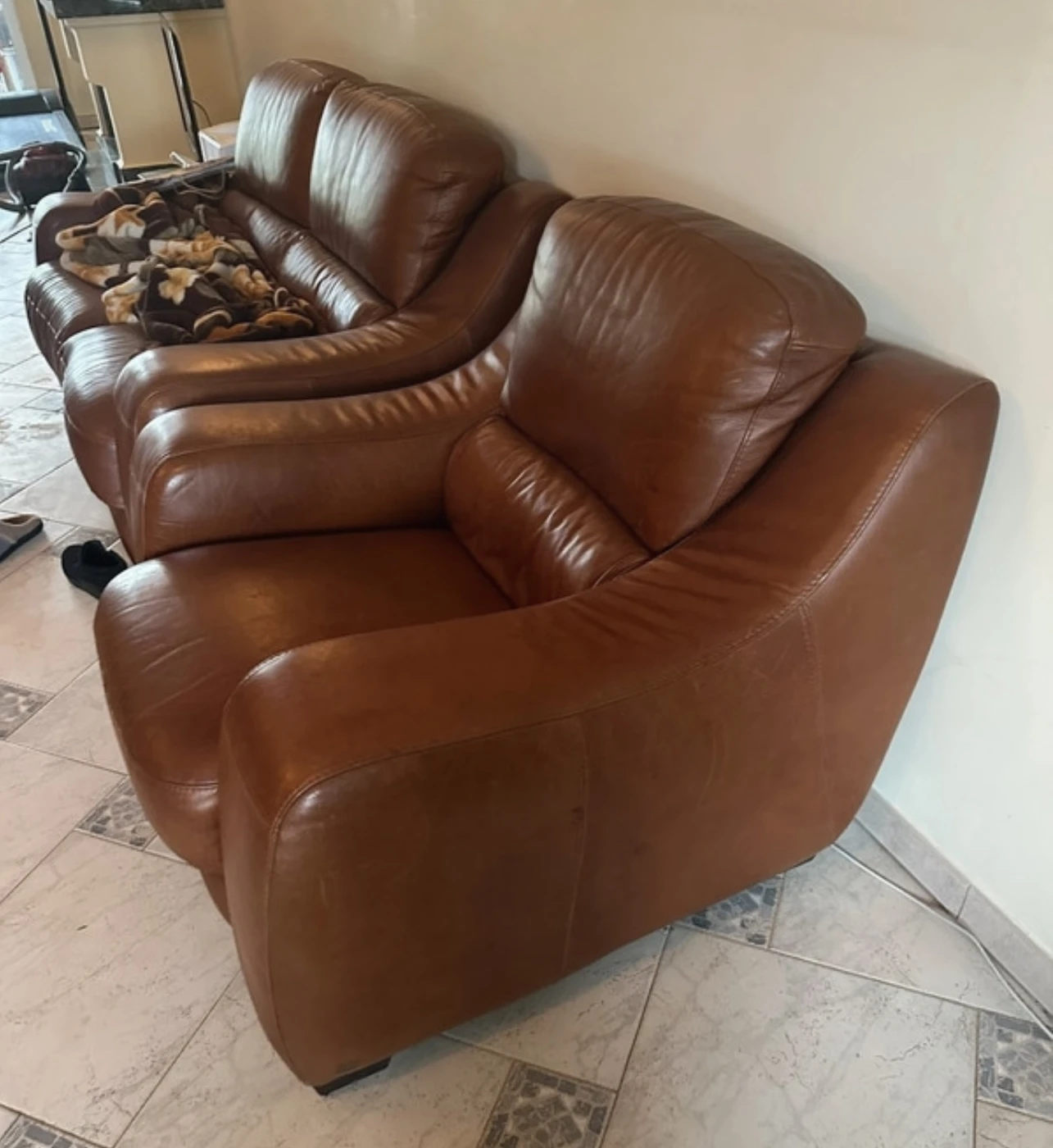 Geros buklės, susideda iš: sofa 210 cm, sofa 170 cm, pufas 68x68 cm, fotelis 100 cm. Parsiduoda tik viskas kartu.
