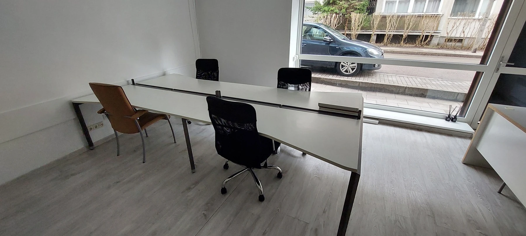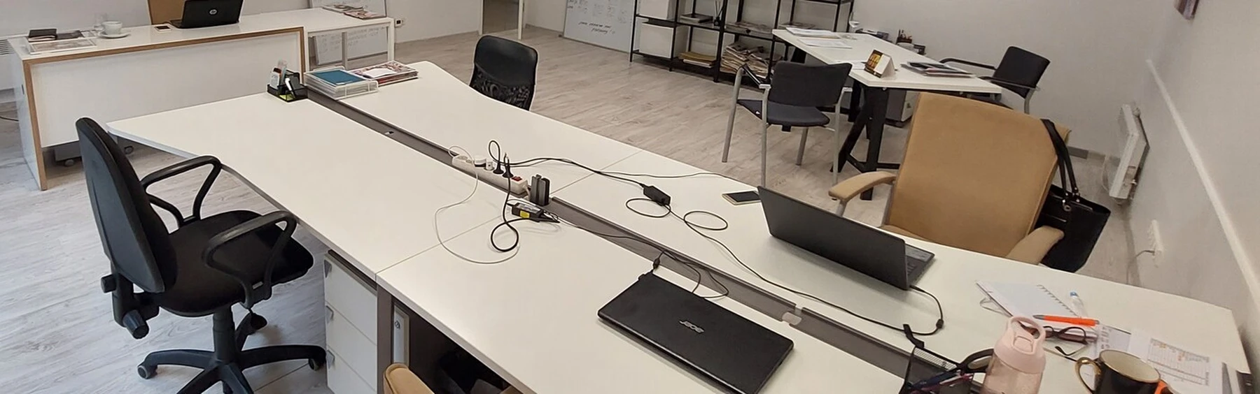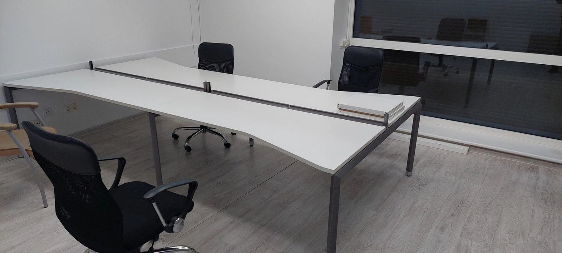 Atiduodamas 4 darbo vietų modernus ofisinis stalas. Išmatavimai: 323 cm.