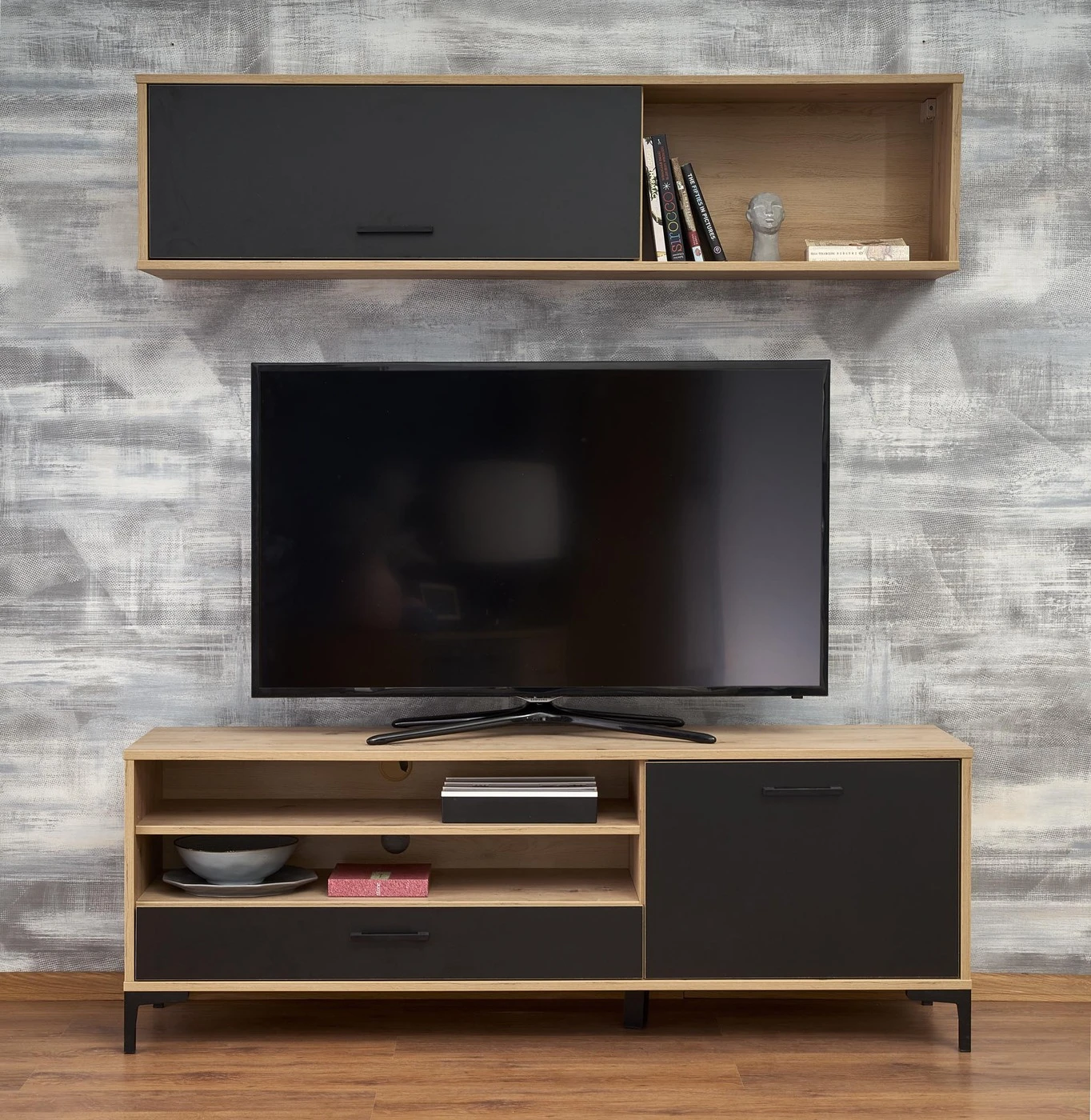pakabinama lentyna, išmatavimai: 160/28/38 cm, medžiaga: laminuota medžio drožlių plokštė / ABS briaunos / polipropilenas, spalva: artisan ąžuolas / juoda