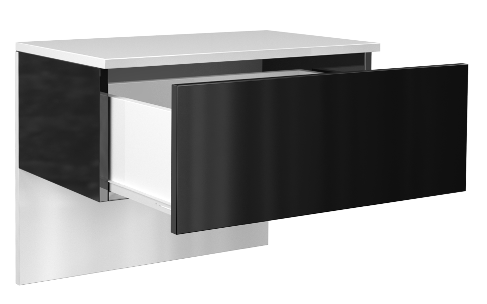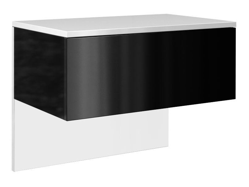 Spintelė pagaminta iš 16 mm storio medžio drožlių plokštės (MDP);Spintelės kraštai dengti ABS danga, kuri pasižymi dideliu mechaniniu ir cheminiu atsparumu;Spintelės išmatavimai: plotis – 61 cm, gylis - 35 cm, aukštis – 46 cm;Ritininiai bėgeliai apsaugo stalčius nuo iškritimo;Spintelės korpuso spalva: blizgi juoda; virštutinė ir apatinė dalis: balta;