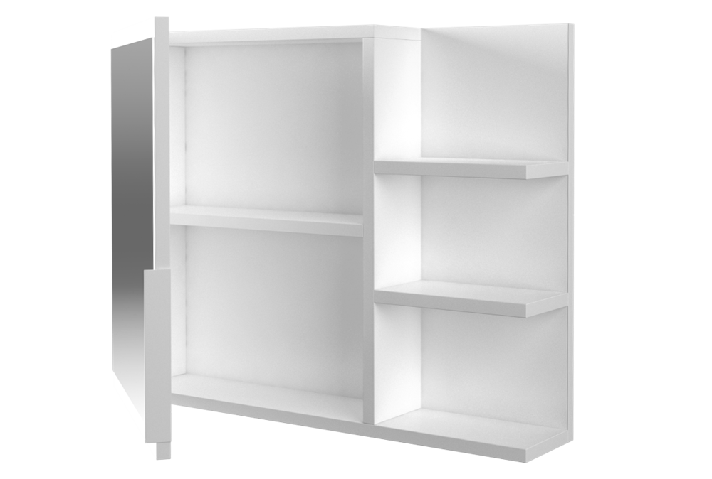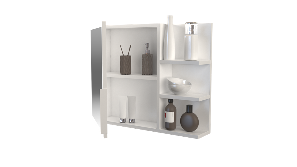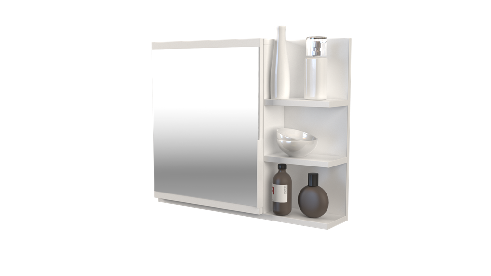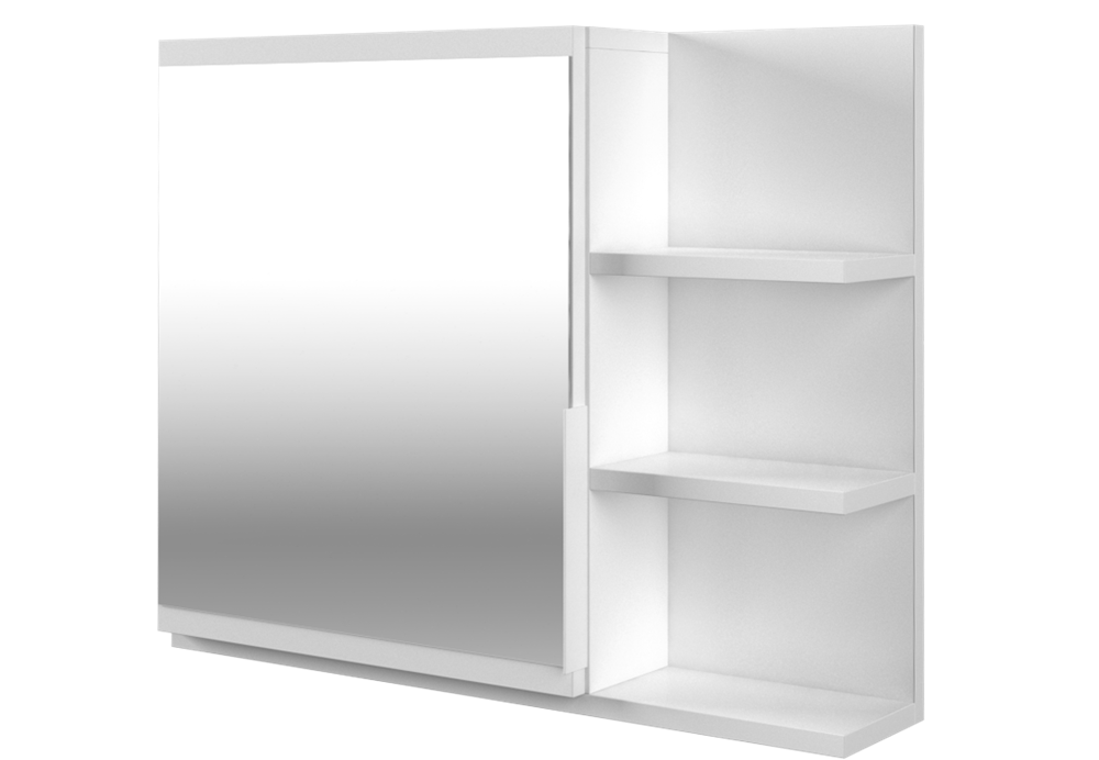 paprastas, praktiškas ir elegantiškas veidrodis su lentynomis;pagaminta iš laminuotos medžio drožlių plokštės (MDP); apsaugota nuo drėgmės; veidrodžio matmenys: plotis - 40 cm, aukštis - 44 cm; erdvi spintelė, kurios viduje - 1 lentyna, 2 skyriai;išmatavimai: plotis - 60 cm, aukštis - 50 cm, gylis - 14,1 cm;3 praktiškos lentynos;spalva: balta (matinė);Galite rinktis kairinį arba dešininį spintelės variantą; be apšvietimo.