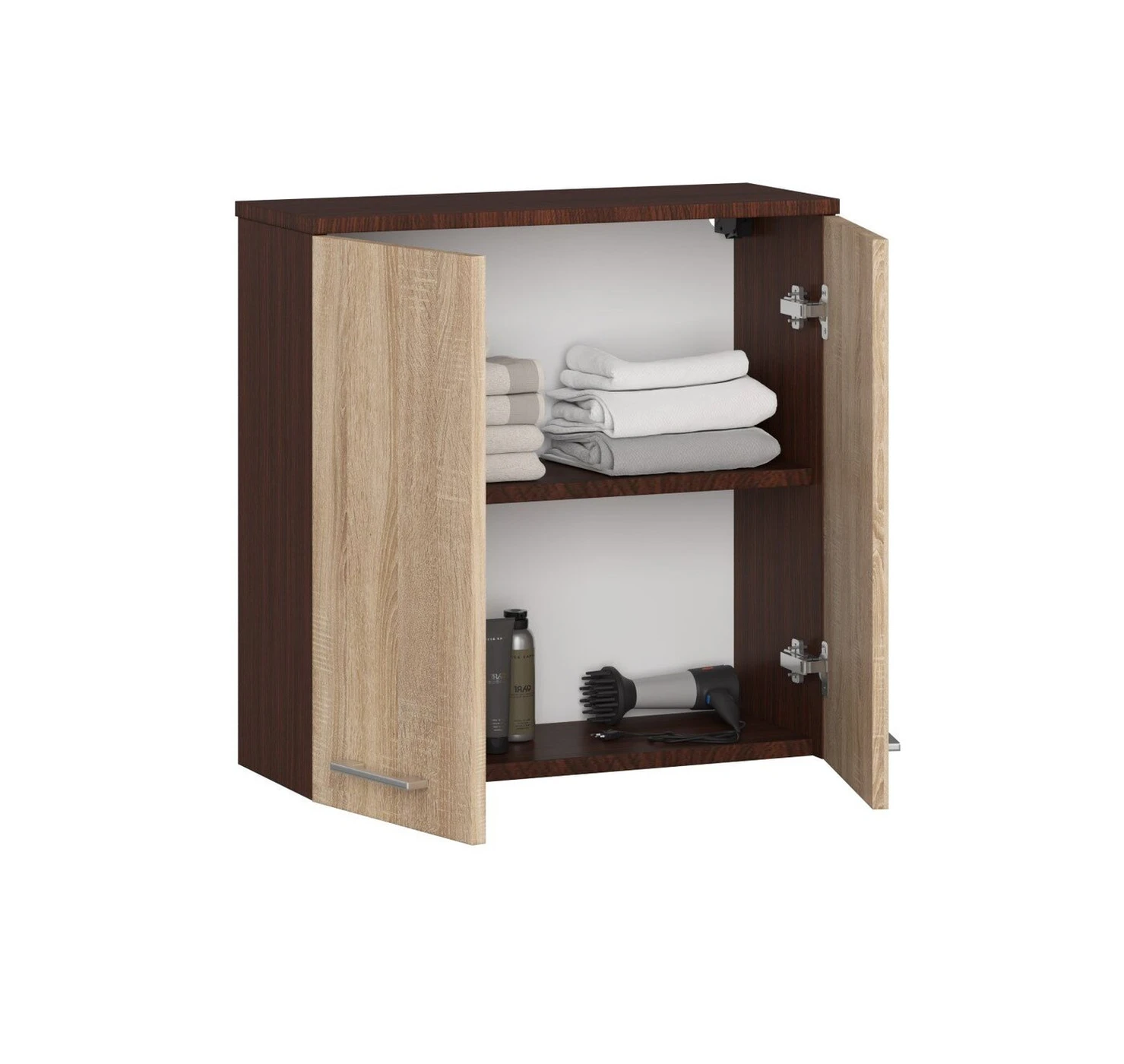 Aprašymas buvo automatiškai išverstas, gali pasitaikyti klaidų. - Spintelė pagaminta iš aukštos kokybės 16 mm Kronospan laminuotos plokštės. Lenta 16 mm storio - Viršutinių durelių viduje yra viena lentyna - Tinkamai apsaugai skirti kraštai padengti ABS briauna - Sidabrinė durų rankenos - Spintelė savarankiškam surinkimui - Universali spintelė, pakuotėje yra reguliuojamos pakabos pakabinimui ir kojelės spintelei pastatyti ant žemės - Instrukcijos įtrauktos - 24 mėnesių garantija