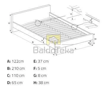 Lovos rėmo Ilgis/Plotis/Aukštis – 210/122/110 cm.