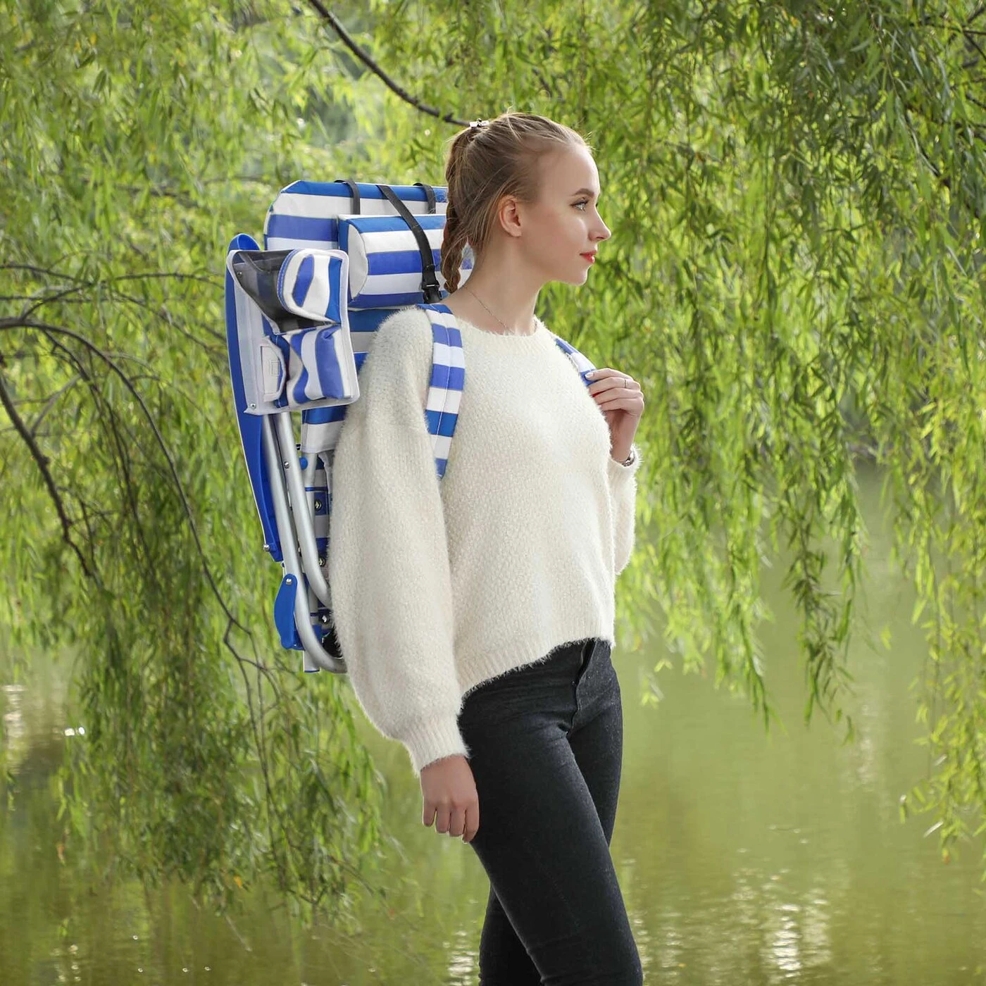 Aprašymas buvo automatiškai išverstas, gali pasitaikyti klaidų.SONGMICS sukūrė lauko kėdžių asortimentą, kad padidintų jūsų komfortą, kai ilsisite paplūdimyje, stovyklavietėje ar sode. Mėgaukitės atostogomis!Tinka bet kur. Planuojate atostogas paplūdimyje prie jūros? Tada ši nešiojama paplūdimio kėdė yra puikus pasirinkimas jums. Ar esate stovyklavimo mėgėjas? Tuomet ir šios kėdės neturėtumėte praleisti. Šis patogus priedas leidžia atsipalaiduoti šalia palapinės ir mėgautis grynu oru. Ši sulankstoma kėdė taip pat puikiai tiks, jei norite su šeima surengti iškylą parke. Patogus ir praktiškas Skaityti knygą? Prigulti? Ant šios sulankstomos kėdės viskas įmanoma! Jis pagamintas iš patvaraus 600D Oxford audinio ir turi aukštą atlošą, todėl jūsų kaklas nepavargsta atsiremdamas į jį. Be to, atlošas yra reguliuojamas ir jūs netgi galite gulėti ant kėdės, o galva patogiai atsiremia į pagalvėlę. Be to, ši kėdė susilanksto ir dėl pečių dirželių bei nedidelio svorio (tik 3,1 kg) lengvai nešiotis ją ant pečių kaip kuprinę. Be to, automobilyje užima mažai vietos. Šioje stovyklavietėje yra viskas, ko jums reikia! Jei esate gamtos ir lauko mylėtojas, peržiūrėkite kitas SONGMICS lauko kėdes!Prekės informacija: - Spalva: Mėlynos ir baltos juostelės - Medžiaga: 600D Oksfordo audinys, aliuminio rėmas - Matmenys: 63 x 68 x 75 cm - Svoris: 3,1 kg - Maksimali keliamoji galia: 150 kg Pristatymo apimtis: - 1 x SONGMICS paplūdimys kėdė Pastabos: - Gaminys neturi liestis su aštriais ar smailiais daiktais.