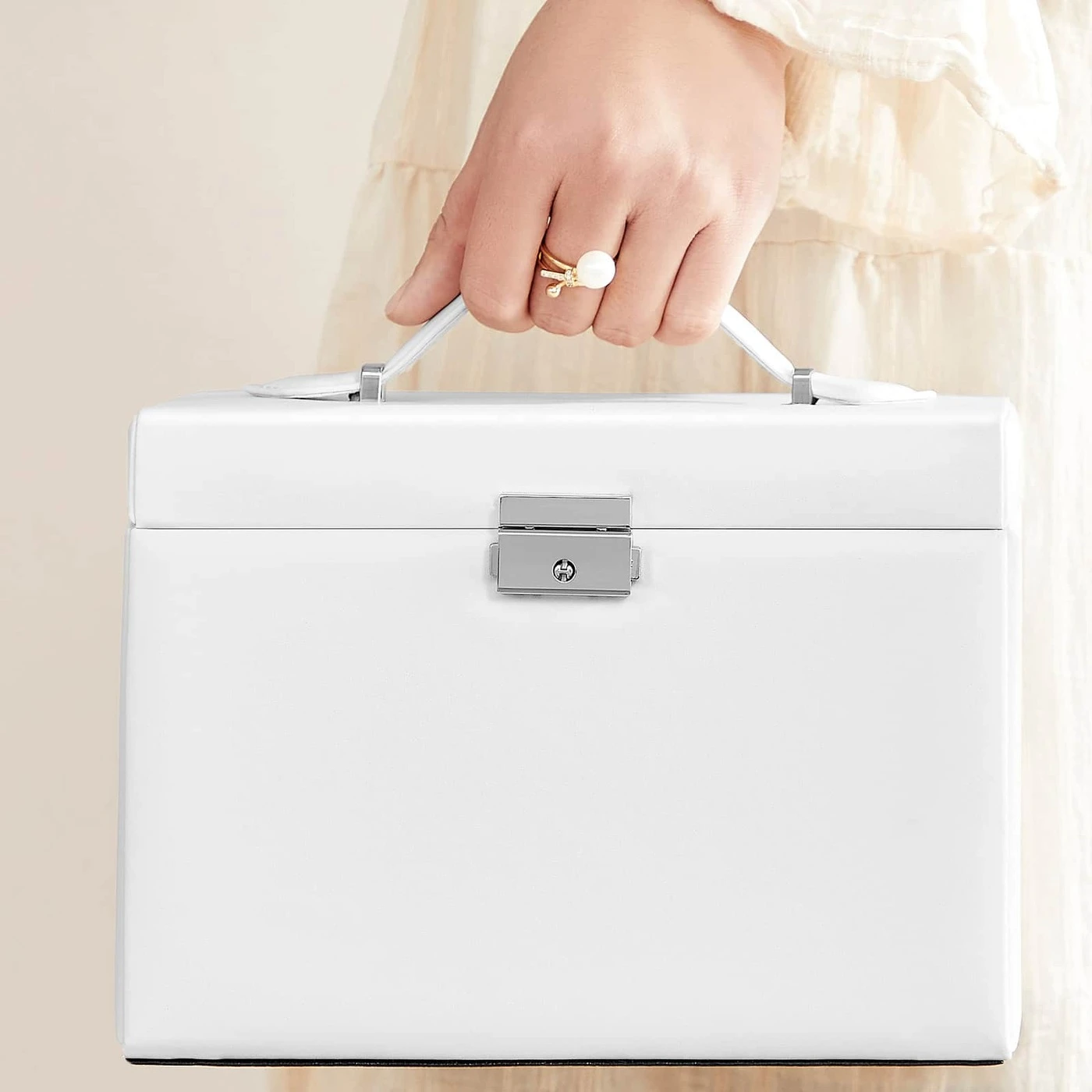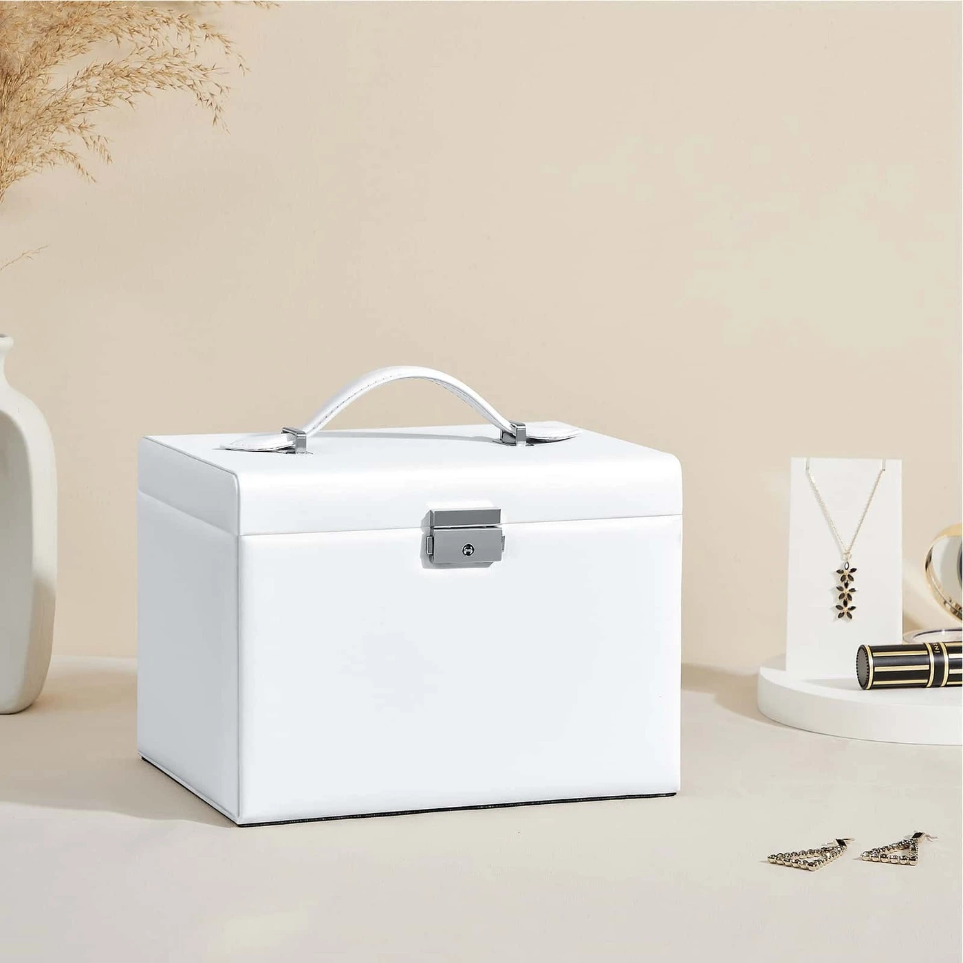 Aprašymas buvo automatiškai išverstas, gali pasitaikyti klaidų.Originalus – už sėkmingą dovaną! Pfu... Ketinate ateiti į draugo gimtadienį tuščiomis rankomis, nes neturite geros dovanos idėjos? Ne ne ne! Verčiau rinkitės šią naudingą, praktišką ir originalią papuošalų dėžutę ir įteikite dovaną kartu su geriausiais linkėjimais!Parodome visus svarbiausius šios papuošalų dėžutės akcentus:Dydis tinka visai papuošalų kolekcijai.3 stalčiai apyrankėms ir kaklo papuošalams, 1 stalčius su nuimamais skirstytuvais.10 skyrelių auskarams, sagėms ir pakabukams, su išimamais pertvaromis su skylutėmis 20 auskarų su smeigtukais.9 lizdai žiedams.8 kabliukai kaklo papuošalams.2 kišenės pakabukams.2 rakteliai dėžutei uždaryti.Informacija apie gaminį: Spalva: balta Medžiaga: MDF (vidutinio tankio medienos plaušų plokštė), aksominis pamušalas Dydis: 22,5 x 17,5 x 16,5 cm (P x P x A) Svoris: 1,6 kg Pristatymo komplektas: 1 x papuošalų dėžutė 2 x raktai