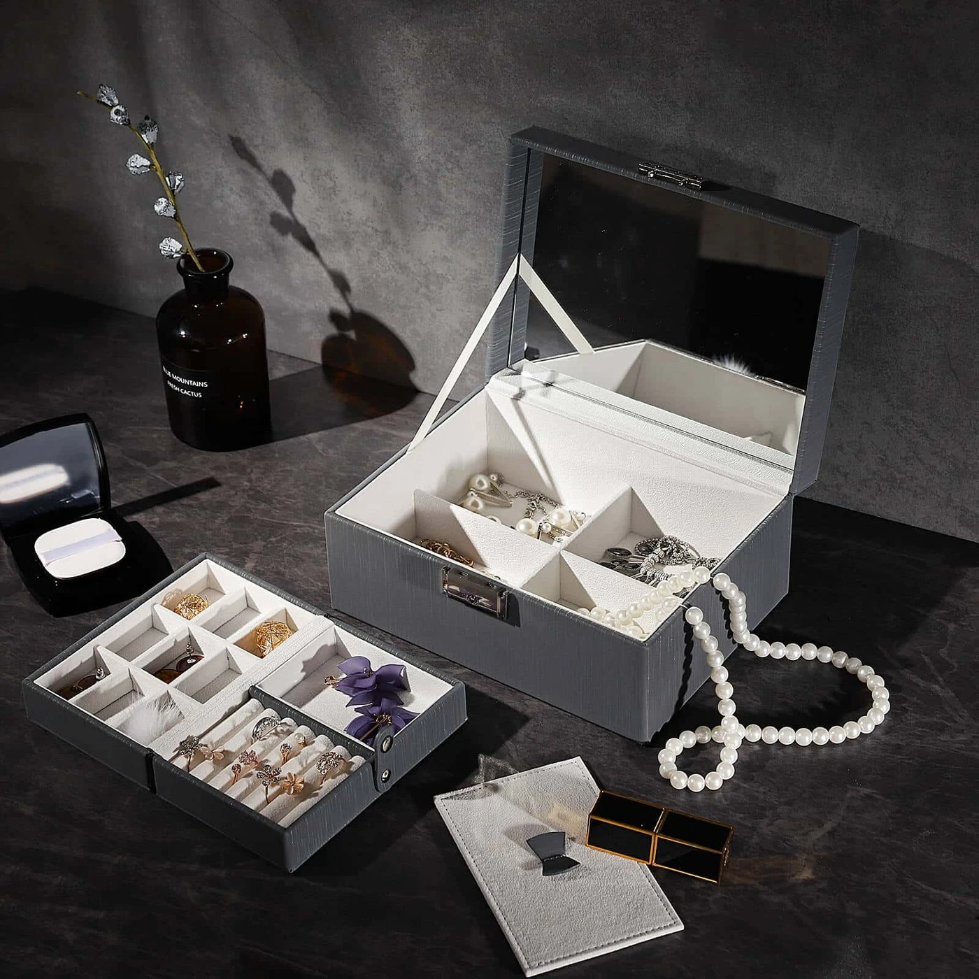 Papuošalų dėžutė su veidrodine JBC232GY, pilkos spalvos