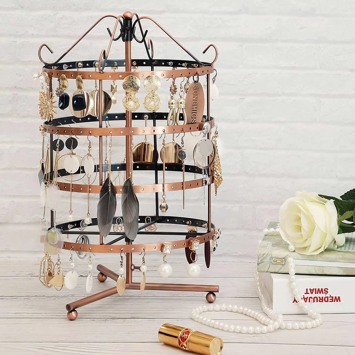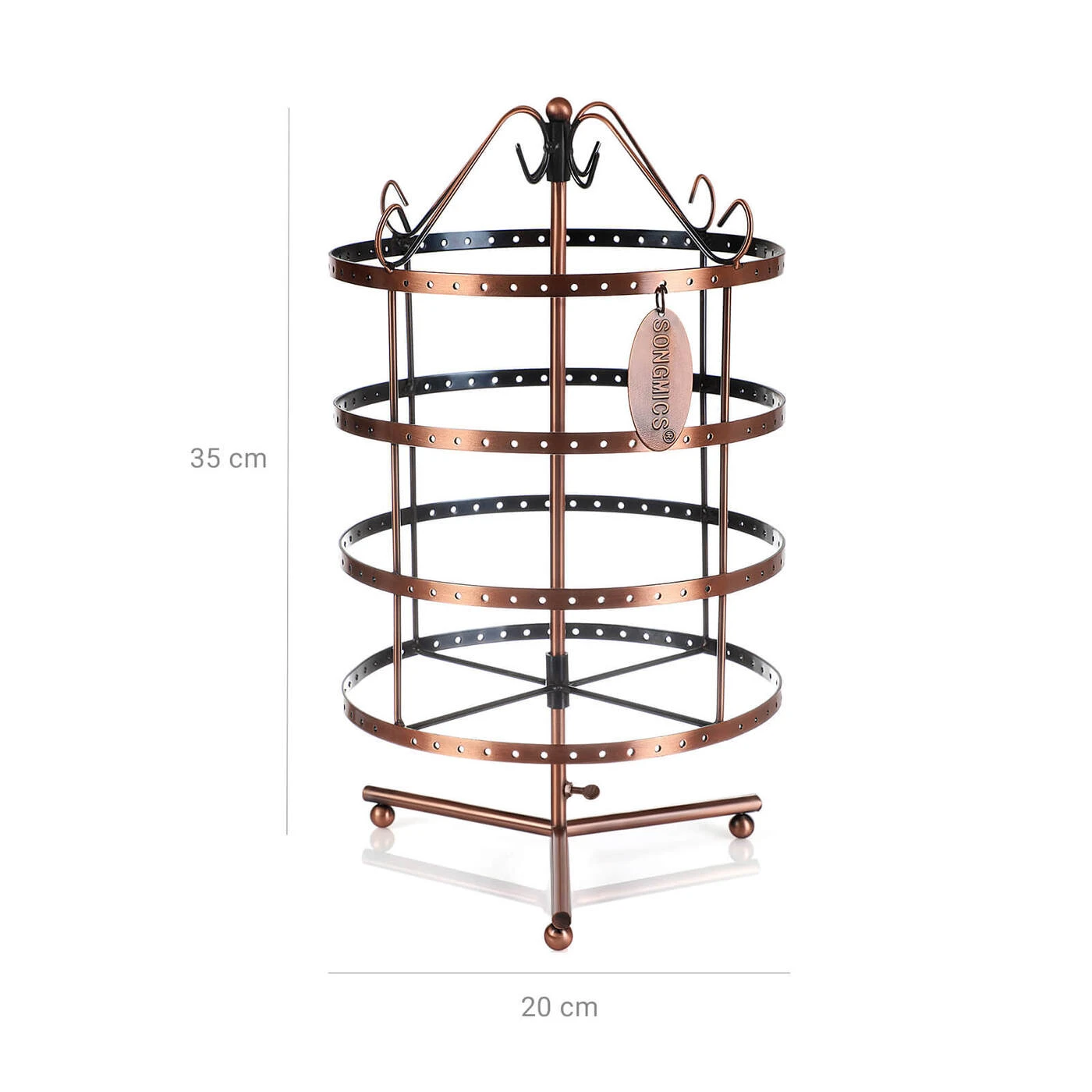 Aprašymas buvo automatiškai išverstas, gali pasitaikyti klaidų.Visur guli auskarai ir karoliai? O ar visada nerandate reikalingų papuošalų? Songmics papuošalų stovas siūlo jums idealų sprendimą, todėl nebereikia ilgų tinkamų papuošalų paieškų! Rėmas pagamintas iš metalo ir atrodo vario spalvos, o tai pabrėžia romantišką charakterį. Paviršius padengtas milteliniu būdu, lygus ir patvarus. Stovas turi pakankamai vietos ir yra pakankamai ilgas ilgesniems auskarams. Stovas gali būti pasukamas 360°, todėl nesunkiai pasieksite viską. Visi jūsų lobiai yra optimaliai sukrauti ir visada paruošti po ranka. Su stabiliu trijų kojų stovu galite pastatyti ir ant stalo, o tuo pačiu jis yra nepasviręs. Su Songmics papuošalų stovu jūsų papuošalai yra dailiai sutvarkyti, netgi pasitarnauja kaip puošmena ir traukia akį kambaryje.Išsami informacija apie gaminį: - Medžiaga: geležis - Spalva: vario spalvos - Gaminio matmenys: 20 x 35 x 20 cm (P x A x G) - Atstumas tarp 2 pėdų: 20 cm - Aukštis: 35 cm Pakuotės turinys: - 1 x papuošalas stovėti