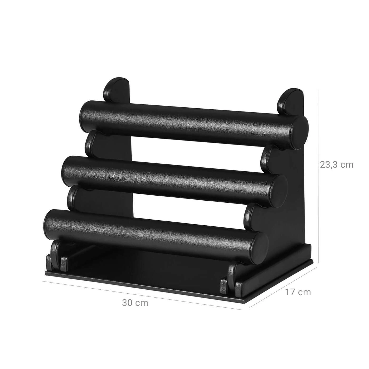 Aprašymas buvo automatiškai išverstas, gali pasitaikyti klaidų. Informacija apie gaminį: - Gražus, elegantiškas ir nesenstantis papuošalų stovas! Šis kilnus papuošalų stendas įtikina ne tik savo elegantišku dizainu, bet ir aukštu funkcionalumu. Su 3 nuimamais nešiklio voleliais, stovas tinka tvarkyti, laikyti ir demonstruoti jūsų apyrankes, laikrodžius ir karolius. - Kilnus apyrankių stovas įneša tvarkos į kiekvieną apyrankės chaosą ir leidžia apyrankėms atrodyti kokybiškai ir elegantiškai. Privaloma visiems papuošalų gerbėjams! Pastabos: - Transportuojant gali atsirasti slėgio taškų, jie išnyks po kelių valandų, tai neturi įtakos naudojimui. - Ritinio perimetras yra 4,7 colio. Prieš pirkdami, išmatuokite papuošalo ilgį, kad išvengtumėte galimo nepakankamo dydžio.Konservavimas ir priežiūra: - Padėkite papuošalų stovą vėdinamoje patalpoje ir nepalikkite stovo ilgesniam laikui saulėje ar didelės drėgmės patalpoje, tinkama temperatūra: 10-40 ℃. Dėmės ant paviršiaus gali būti nuvalytos šiek tiek drėgnu skudurėliu.- Reguliariai naudokite specialią odos priežiūros priemonę, kad oda ilgą laiką išlaikytų blizgesį.- Saugokite papuošalų laikiklį nuo sutrynimo saugojimo metu.- Nelaikykite papuošalų laikiklio su chemikalais.Pristatymo komplektacija: - 1 x papuošalų stovas (be papuošalų)