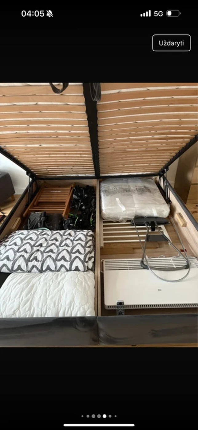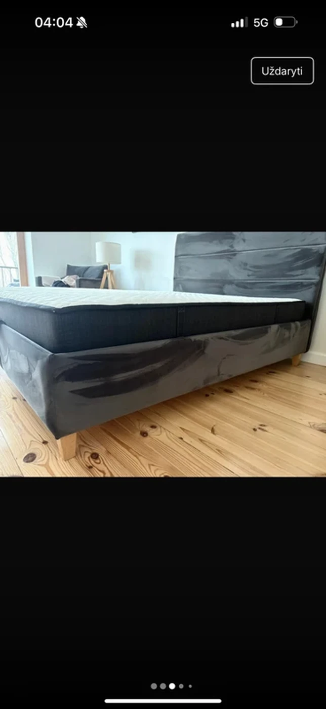 Medžio masyvo lova. Dydis: 160 x 200 cm (čiužiniui), rėmo dydis: 168 x 214 x 39 cm.Naudota keletą metų. Gobelenas - tamsiai pilkas veliūras, labai lengvai prožiūrimas dulkių siurbliu ir/ar drėgna šluoste. Talpi patalynės dėžė, kokybiškos medinės grotelės. Lovos kojos - lakuotas medis.Lovą išsivežti reikia šį savaitgalį. Apžiūrėti ir išsinešti iš Kauno centro.Papildomai parduodamas ir Dormeo čiužinys (naudotas 1 m. laiko).18 cm aukščio. Keičiamos čiužinio pusės: viena minkštesnė, kita - kietesnė. Už čiužinį mokėta >800 e.Čiužinio defektai: minimaliai prairę du kampukai bei nežymi dėmė nuo išlieto vandens (tikrai vandens).Dėl čiužinio kainos teirautis atskirai :).