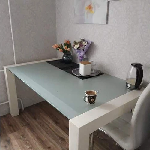 Stilingas virtuvinis stalas su storu stiklu ir marmuro pagrindu