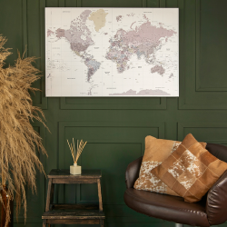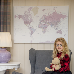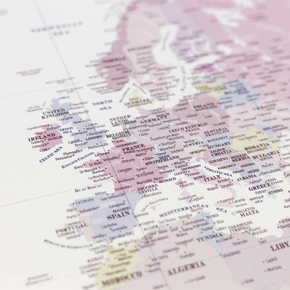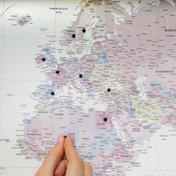 XL 150×100 cm – 199 €, L 120×80 cm – 159 €, M 100×700 cm – 119 €. MEDŽIAGOS Žemėlapis išliks ryškus ir puikios išvaizdos daugybę metų, nes jam pagaminti naudojamos aukščiausios kokybės medžiagos. Išspausdintas vaizdas yra padengiamas vandens pagrindo rūgščių neturinčiu apsauginiu laku, kuris atitinka muziejuose saugomų eksponatų reikalavimus - iki 80-100 metų spalvos išlieka nepakitusios. Kiekvienas žemėlapis yra kruopščiai pagamintas Lietuvoje profesionalių MyPoint meistrų. Smulkios tekstūros ir tvirta 310g/m² drobė Coala,Aukštos raiškos Mutoh spausdintuvas, užtikrinantis aiškų skaitomumą (Japonija),Originalūs ir ilgaamžiai dažai, suteikiantys ryškias spalvas (Japonija),Nuo blukimo ir neigiamo aplinkos poveikio apsaugantis matinis spaudos lakas (Jungtinė Karalystė);Tvirtas natūralaus medžio porėmis užpildytas su putų plokšte – lengvai konstrukcijai ir patogiam smeigtukų naudojimui (Lietuva).